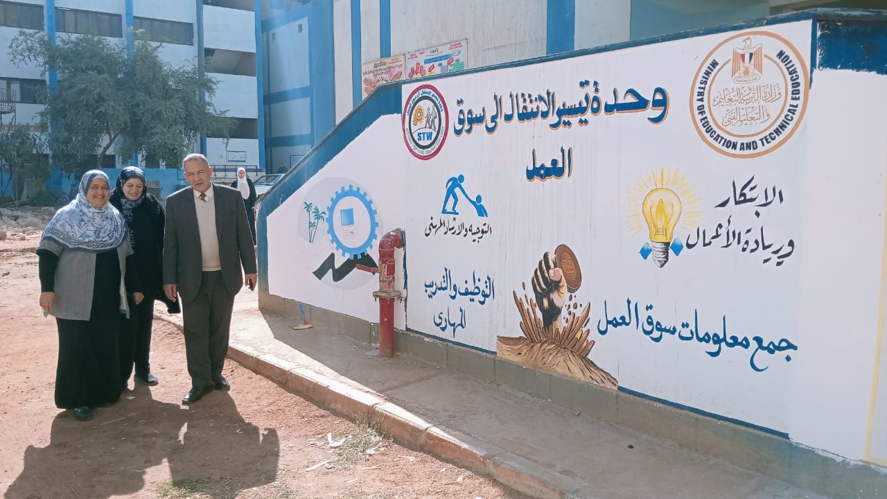 وكيل وزارة التعليم بأسيوط يزور المدرسة الثانوية الصناعية بنات بحى شرق ويشيد بالأعمال الفنية للطالبات