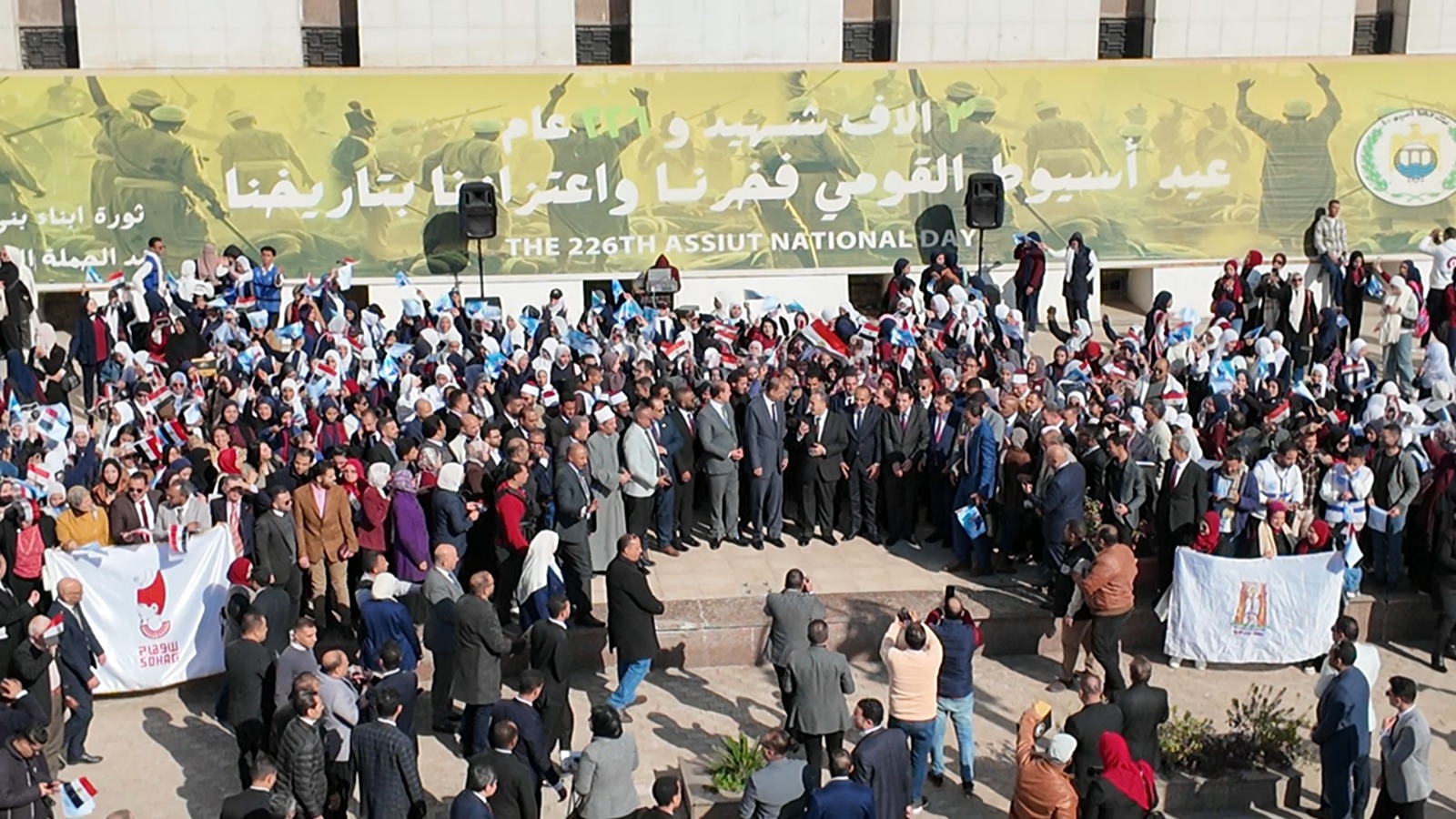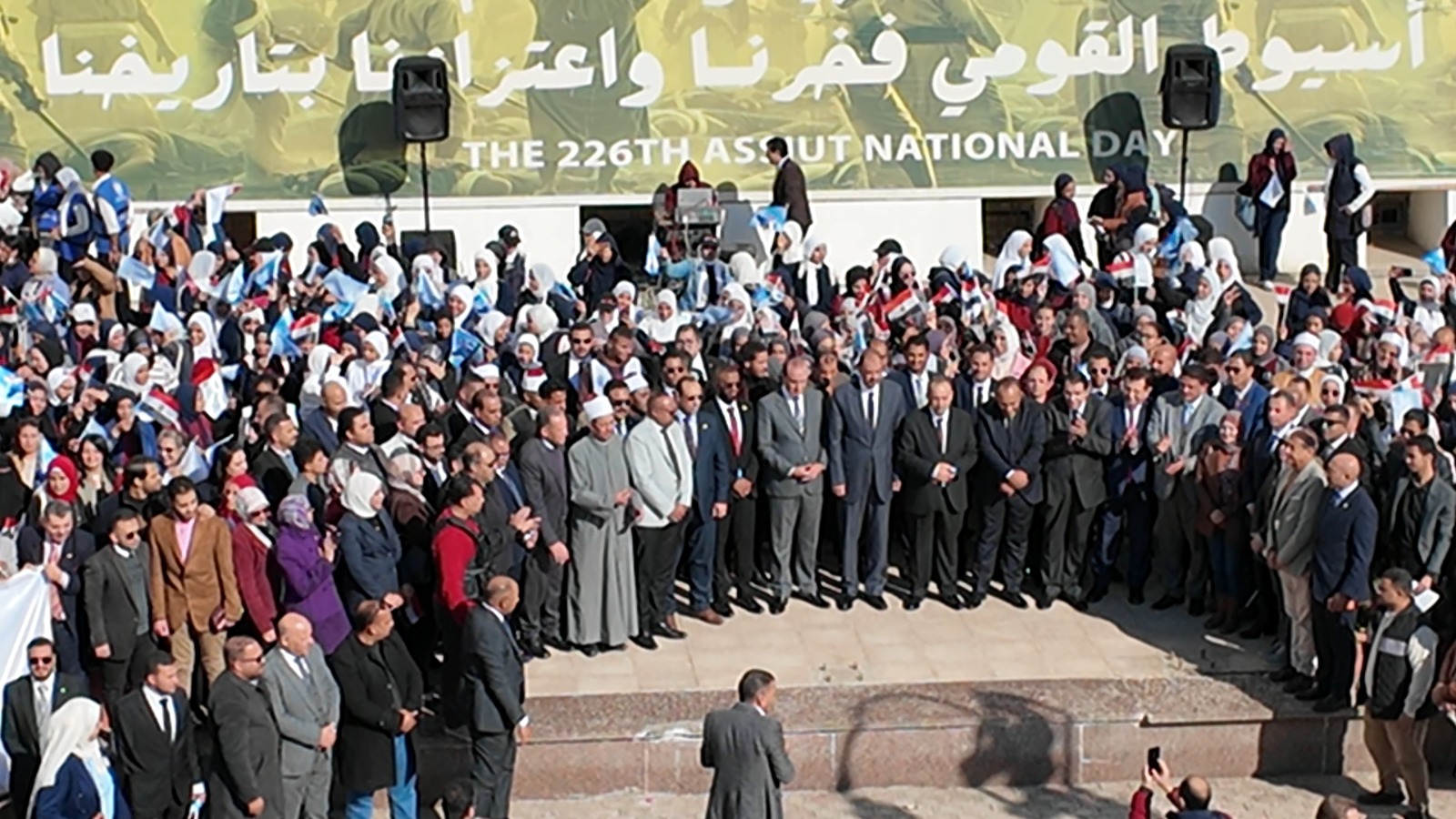 وعقب إعلان ختام الفعاليات، شهد محيط ديوان عام محافظة أسيوط لوحة وطنية لافتة، حيث تجمع آلاف المتدربين من الشباب في لقطة جماعية رسمية عكست بوضوح روح الانتماء والفخر الوطني، واصطف المشاركون في ساحة الديوان وسط أجواء احتفالية تزينت بالأعلام المصرية وصور الرئيس عبد الفتاح السيسي، بينما صدحت الأغاني الوطنية في الخلفية، لتضفي على المشهد طابعًا مميزًا يجسد وحدة الشباب وتماسكهم وحماسهم.