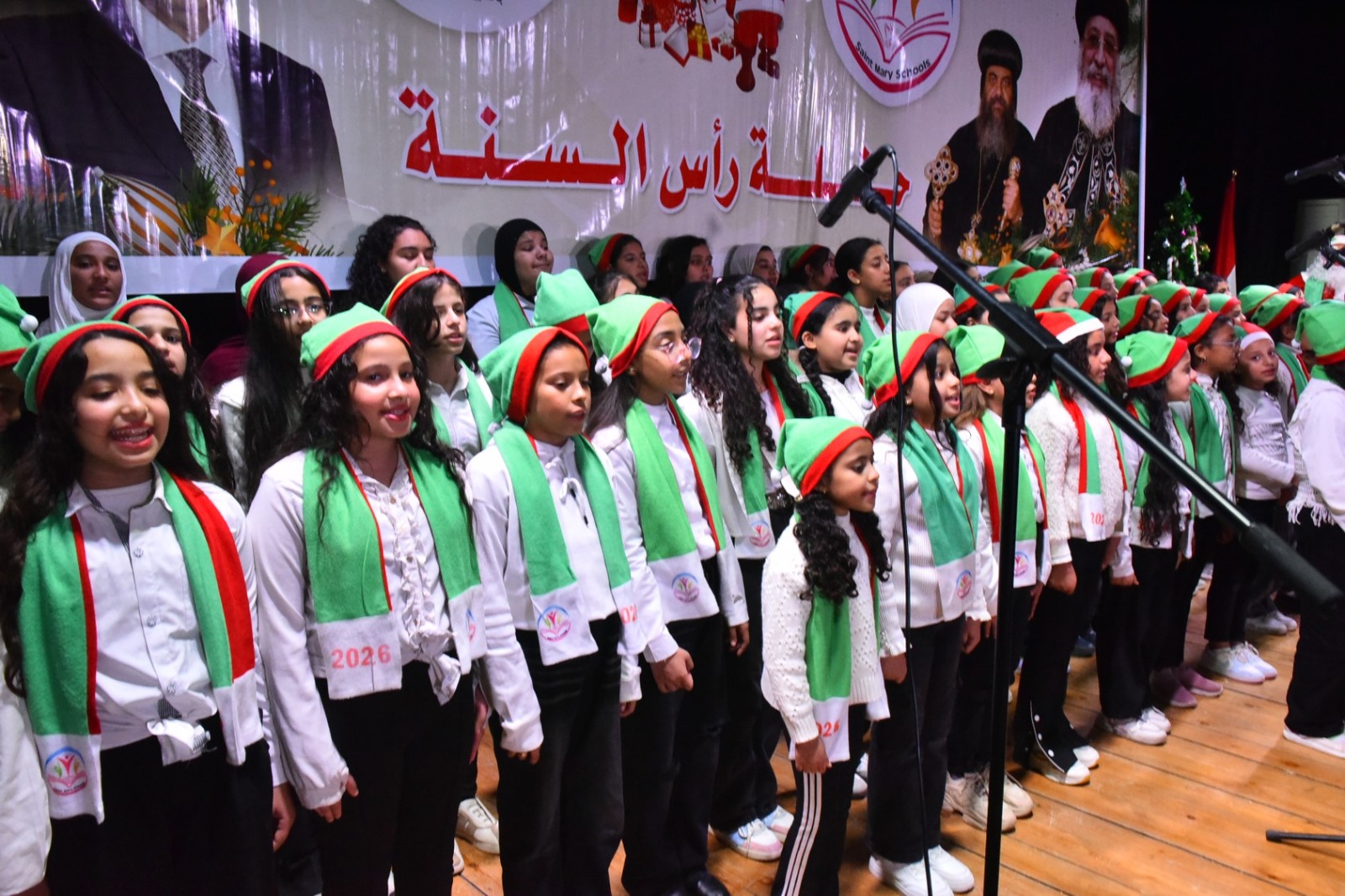 بدأت فعاليات الاحتفال بعزف السلام الوطني، أعقبه ترديد النشيد الوطني بعدة لغات شملت العربية والقبطية والإنجليزية والفرنسية، في رسالة تعكس روح التعدد والانفتاح، ثم قُدمت مجموعة من الفقرات الفنية والغنائية التي أداها طلاب وكورال المدرسة احتفالاً بالعام الميلادي الجديد، بالإضافة إلى عرض أوبريت «وطن حبيبي الوطن الأكبر» بإشراف هيلانة جرجس، والذي أظهر ما يتمتع به الطلاب من مواهب فنية وقدرات إبداعية متميزة.