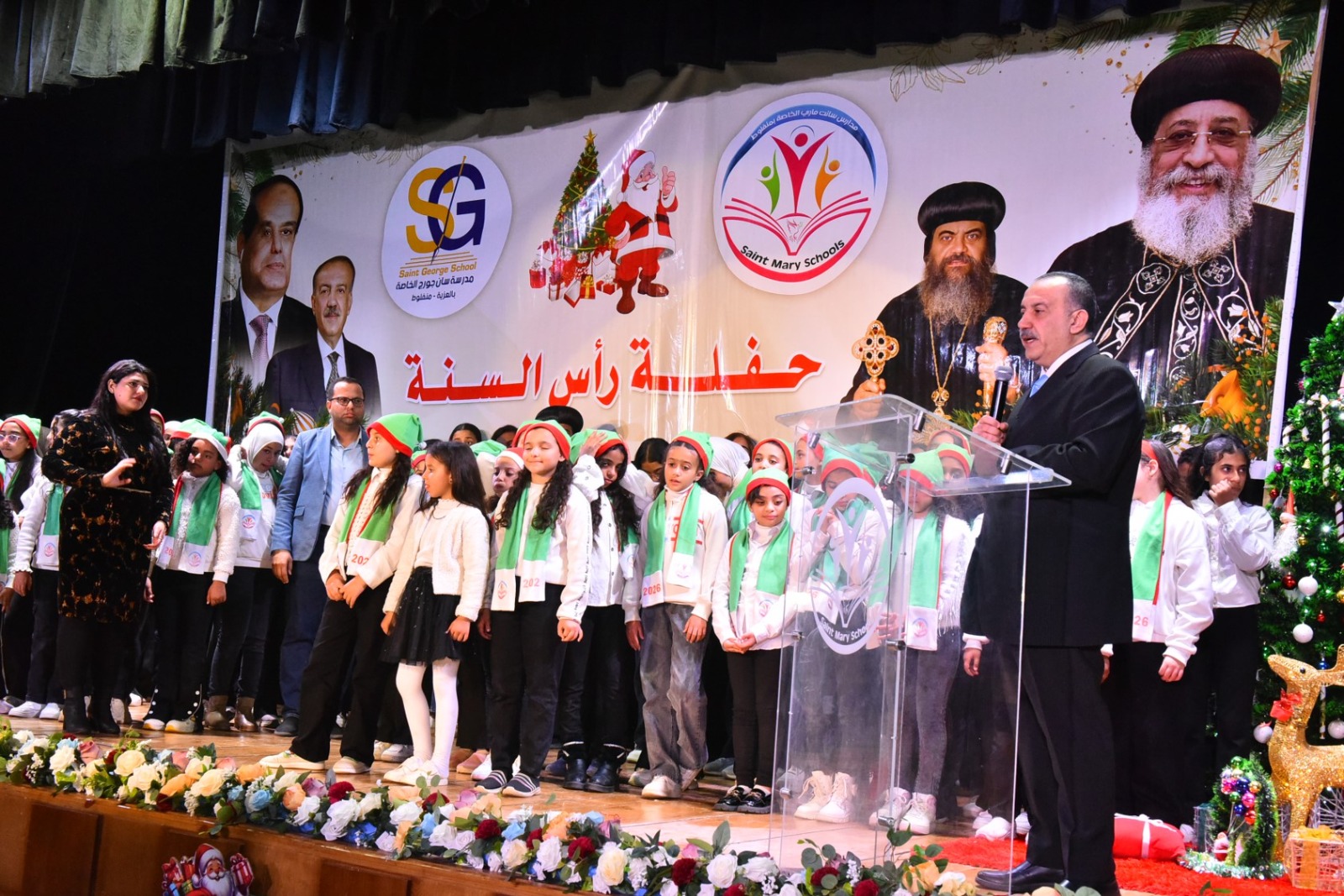 من جانبه، وجه الأنبا ثاؤفيلس أسقف منفلوط ورئيس مجلس إدارة مدارس سانت ماري الخاصة، الشكر لمحافظ أسيوط على حرصه على حضور الاحتفال وتقديم التهنئة بمناسبة أعياد الميلاد وقرب حلول العام الجديد 2026، معتبراً ذلك تجسيداً حقيقياً لروح المحبة والتلاحم الوطني بين أبناء الوطن الواحد، كما نقل للمحافظ تحيات وتقدير قداسة البابا تواضروس الثاني، مؤكداً أن المدرسة تحرص على تقديم رسالة تعليمية وتربوية متكاملة تقوم على غرس القيم الإنسانية والوطنية، وتنمية روح التسامح وقبول الآخر، إلى جانب اكتشاف وتنمية مواهب الطلاب في مختلف المجالات العلمية والثقافية والفنية.