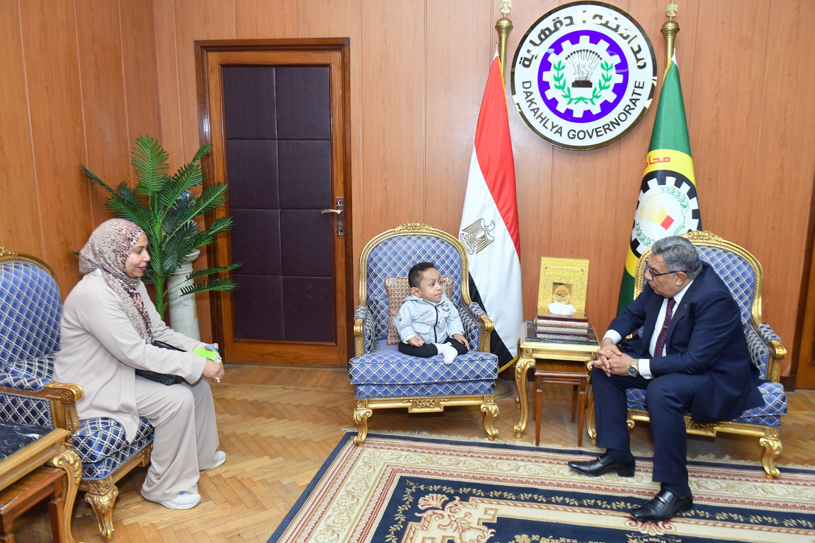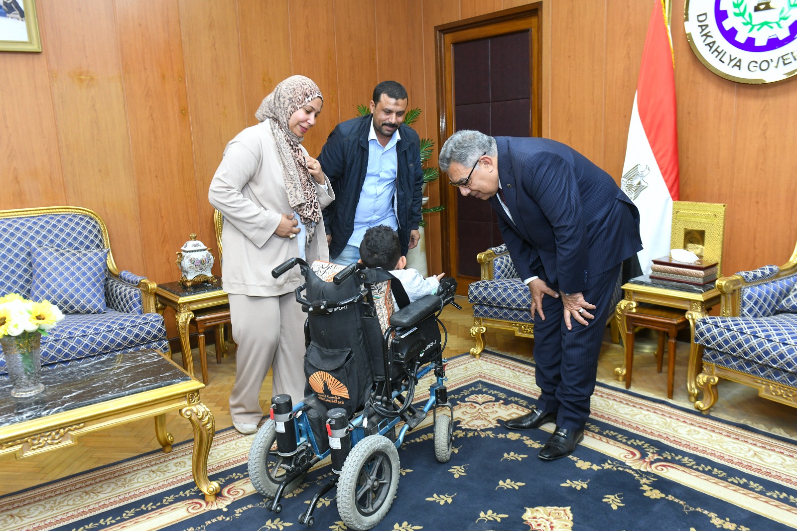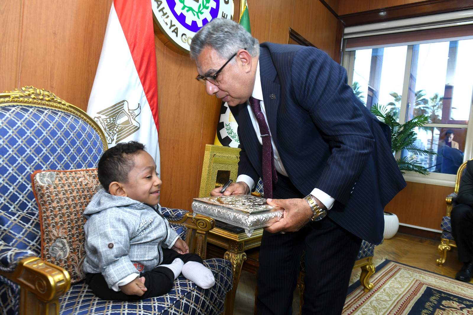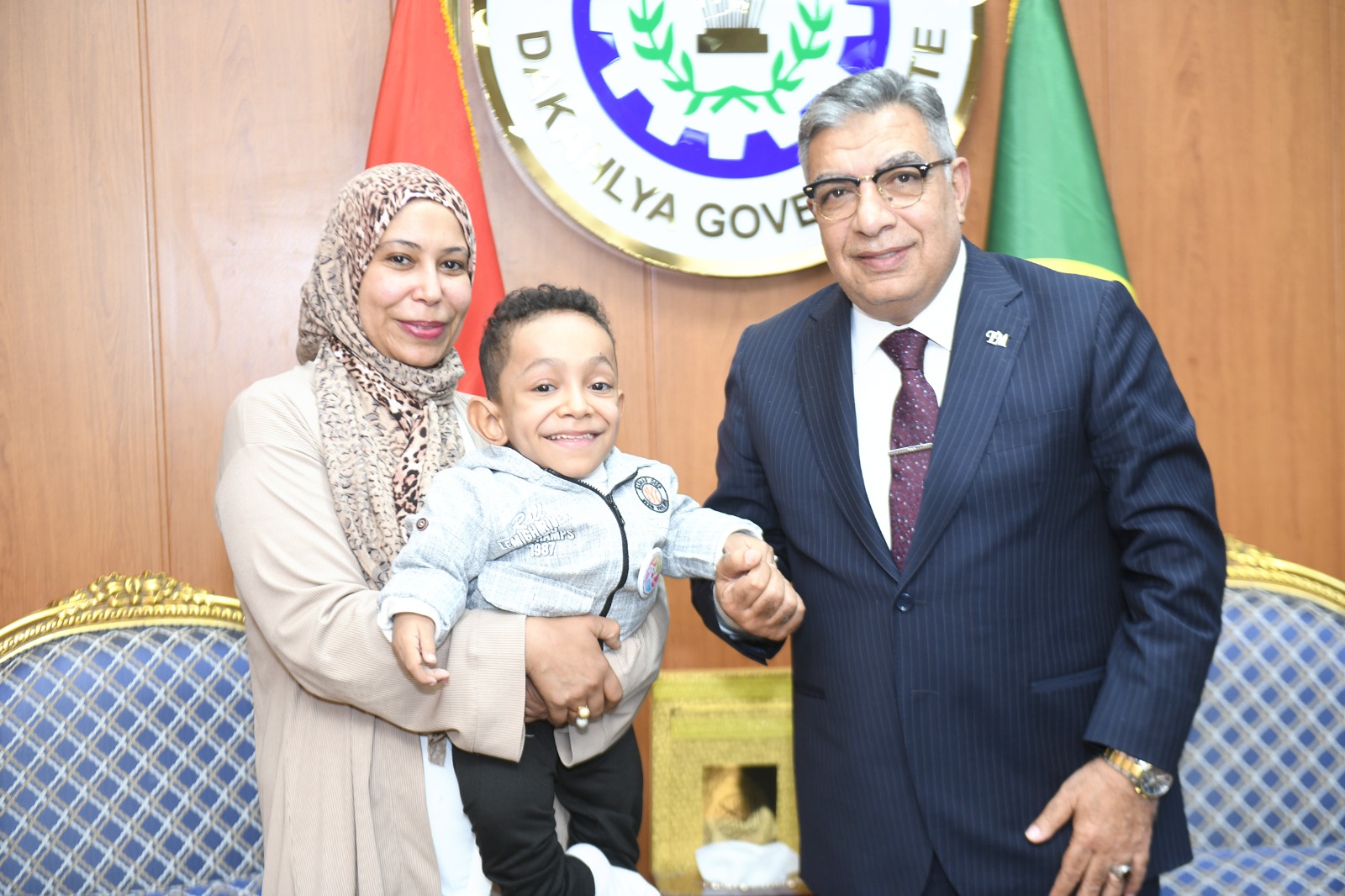 لفتة إنسانية من محافظ الدقهلية يلبى رغبة طفل من ذوي الهمم في مقابلتة .. ويستقبله بمكتبه ويهديه مصحف