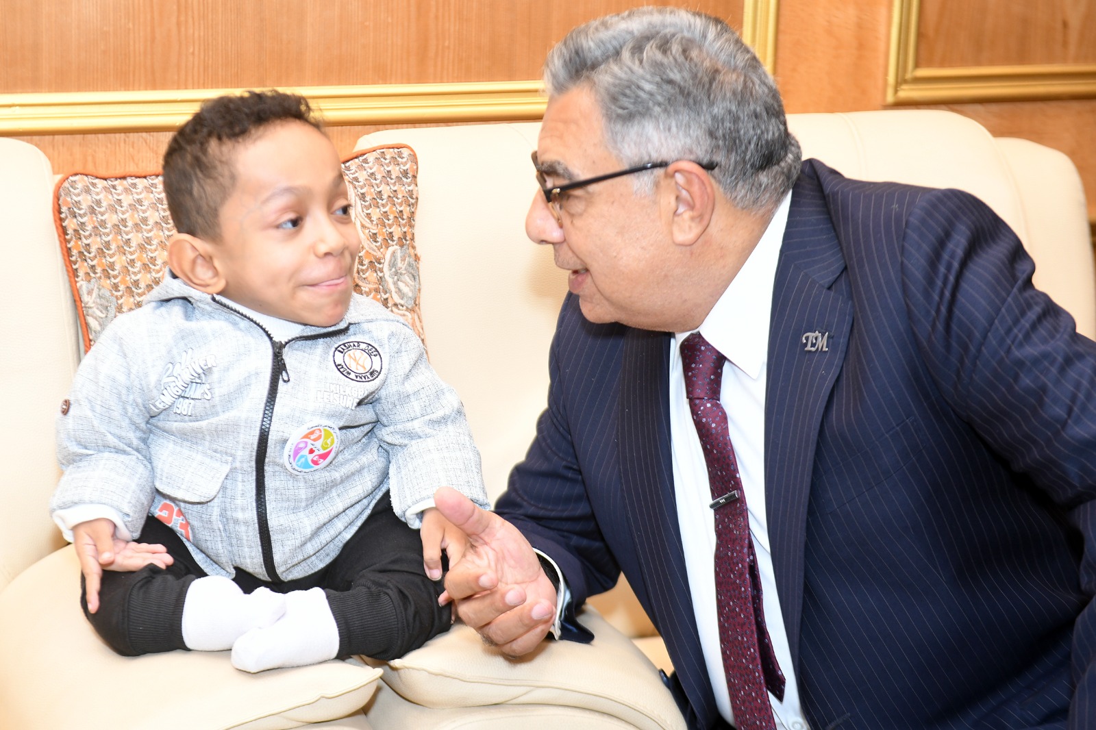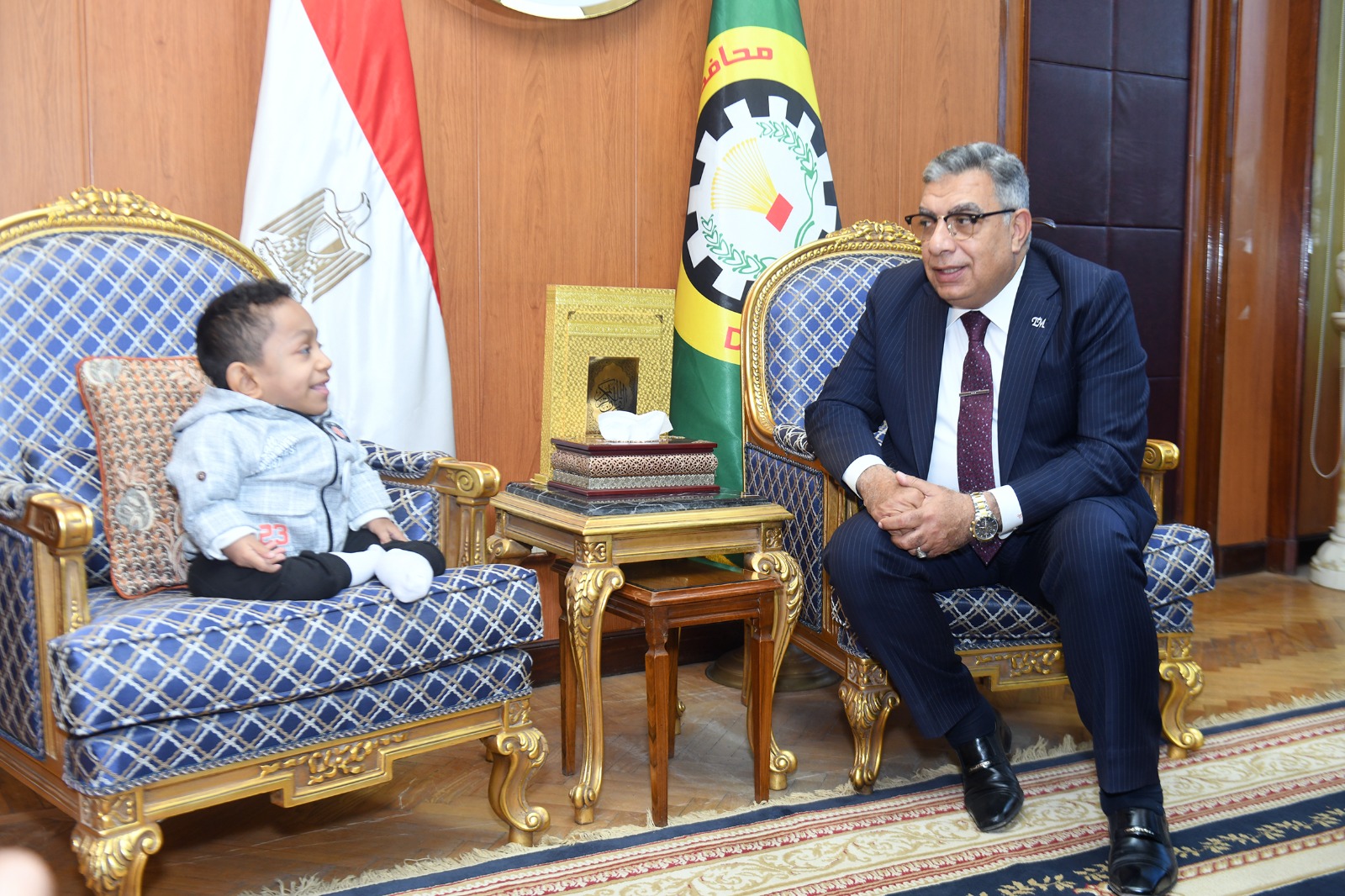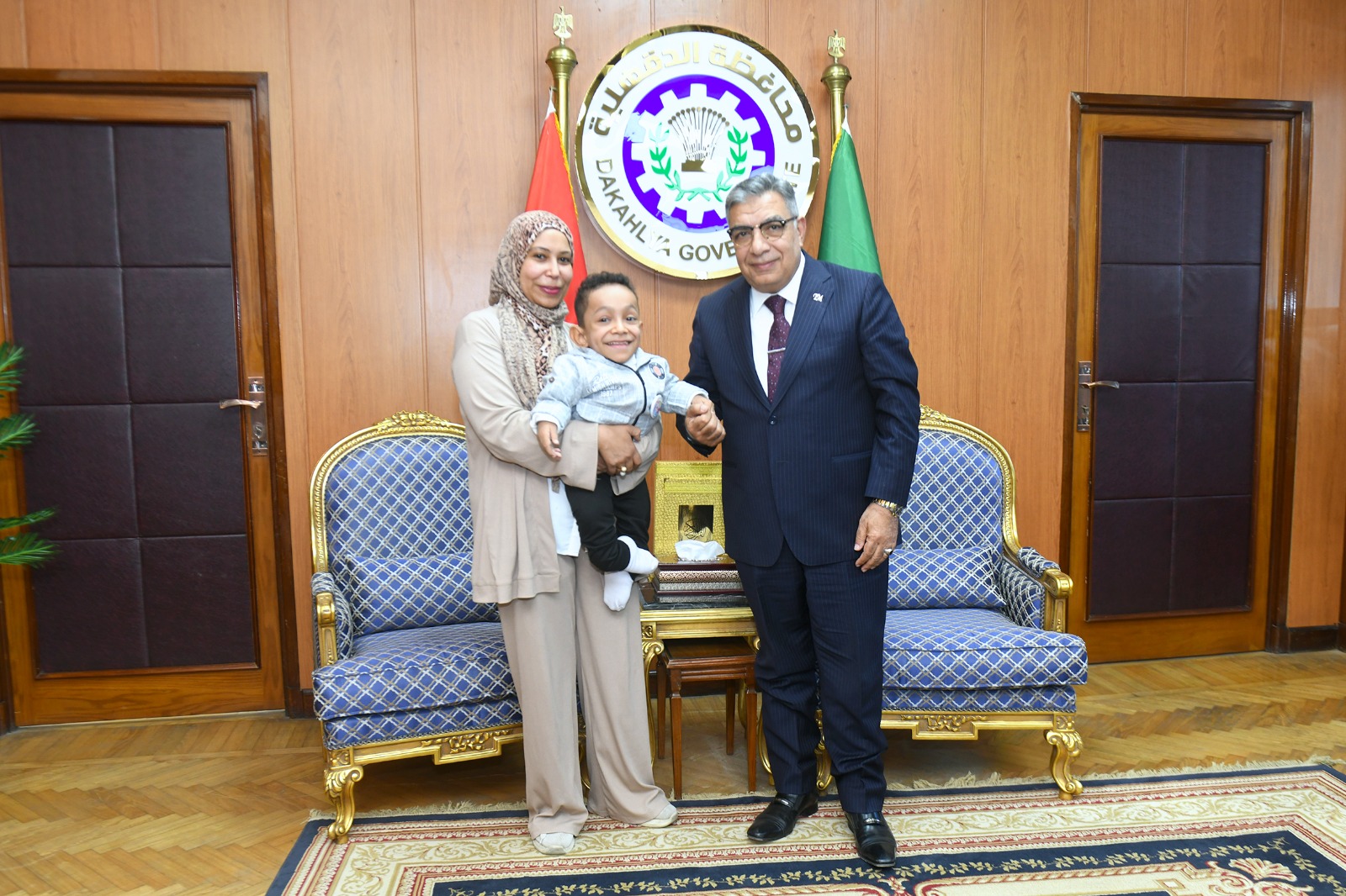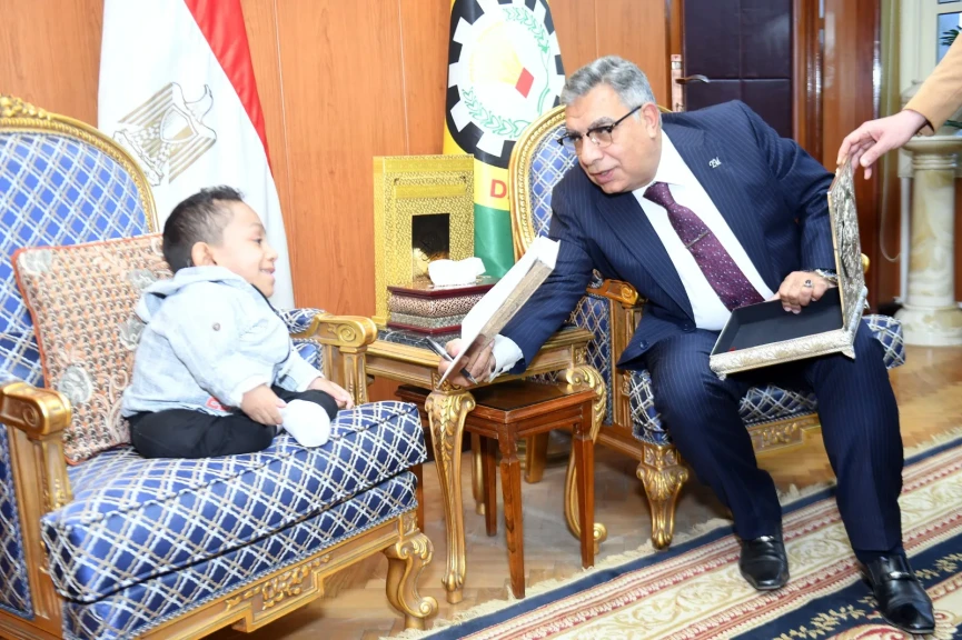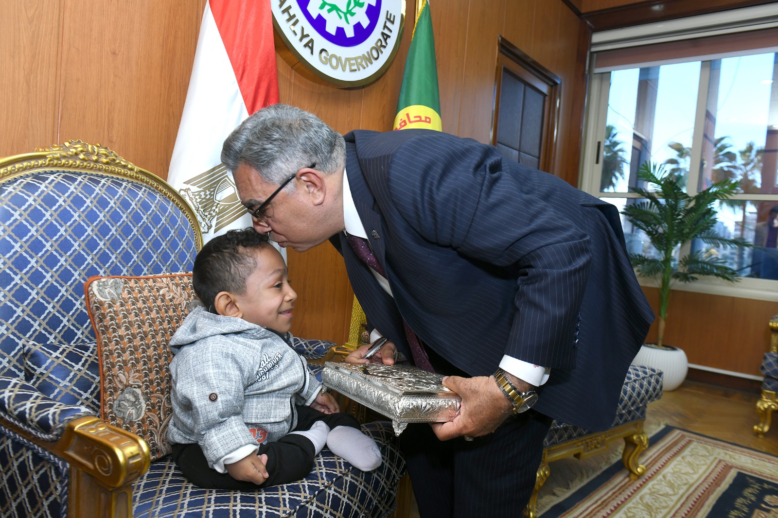 لفتة إنسانية من محافظ الدقهلية يلبى رغبة طفل من ذوي الهمم في مقابلتة .. ويستقبله بمكتبه ويهديه مصحف