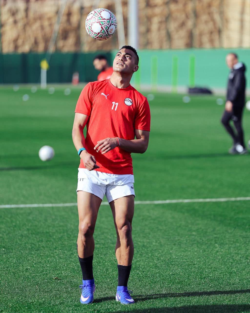 بينما أدى مهند لاشين، لاعب وسط المنتخب، تدريبات تأهيلية، استعداداً للمباراة بعد إصابته بكدمة في الضلوع خلال مباراة أنجولا.