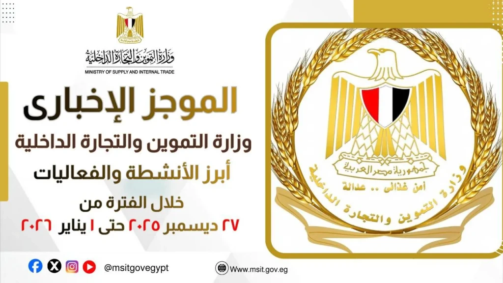 تعرف على الموجز الاخباري لأبرز أنشطة وزارة التموين والتجارة الداخلية من ٢٧ ديسمبر ٢٠٢٥ إلى ١ يناير ٢٠٢٦