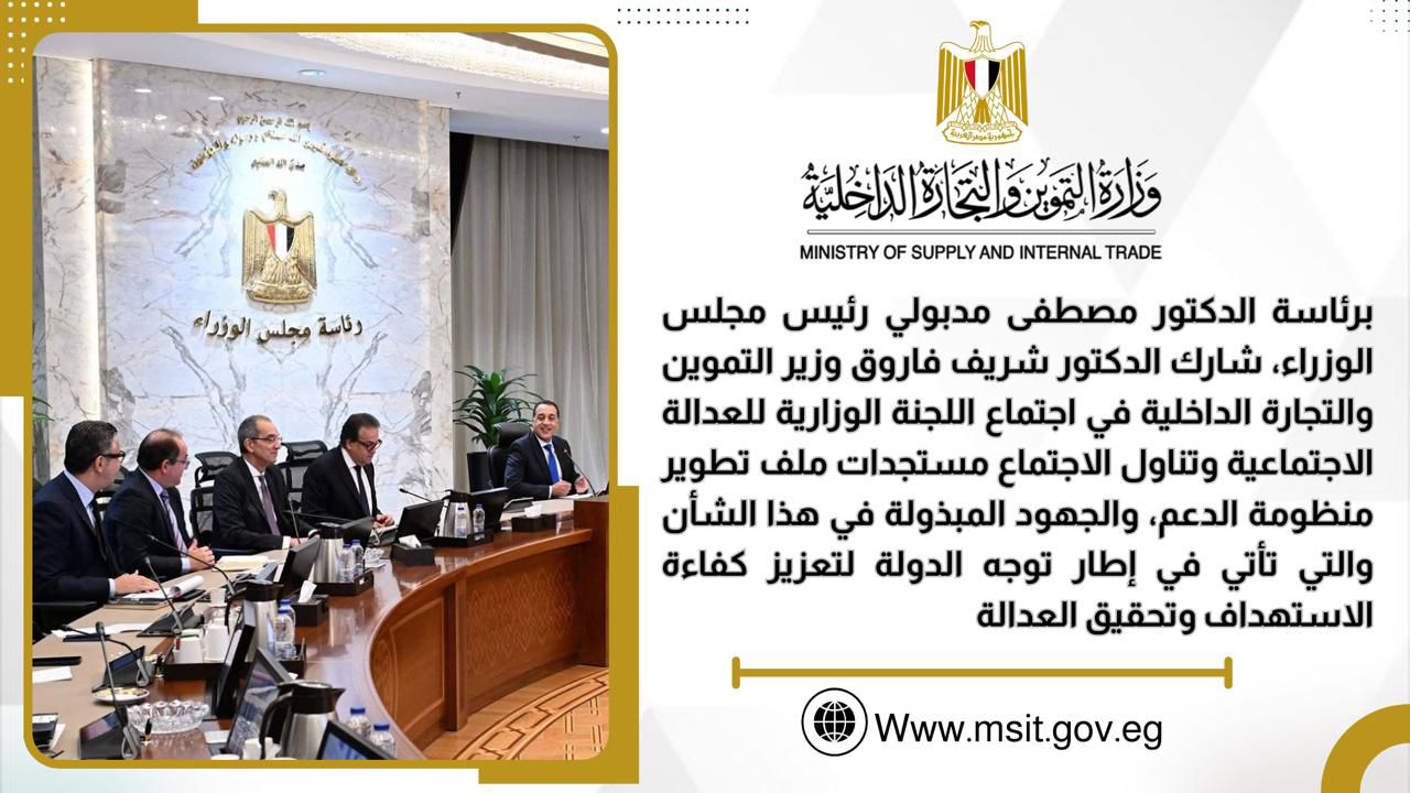 برئاسة الدكتور مصطفى مدبولي، رئيس مجلس الوزراء، شارك الدكتور شريف فاروق وزير التموين والتجارة الداخلية في اجتماع اللجنة الوزارية للعدالة الاجتماعية، وتناول الاجتماع مستجدات ملف تطوير منظومة الدعم، والجهود المبذولة في هذا الشأن، والتي تأتي في إطار توجه الدولة لتعزيز كفاءة الاستهداف وتحقيق العدالة الاجتماعية، وضمان وصول الدعم إلى مستحقيه.