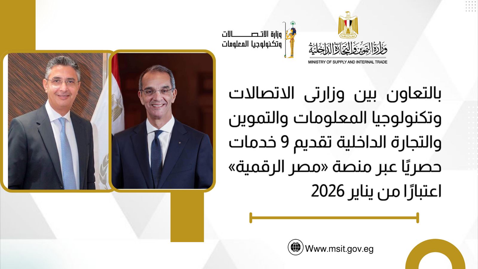 في إطار تنفيذ توجيهات الدكتور شريف فاروق وزير التموين والتجارة الداخلية، والتماشي مع استراتيجية الوزارة في تطبيق التحول الرقمي بكافة الملفات، أعلن جهاز تنمية التجارة الداخلية في ضوء الإقبال المتزايد على استخدام منصة «مصر الرقمية»، إتاحة عدد (9) خدمات من خدمات السجل التجاري بشكل حصري عبر المنصة،، وذلك اعتبارًا من 1 يناير 2026.