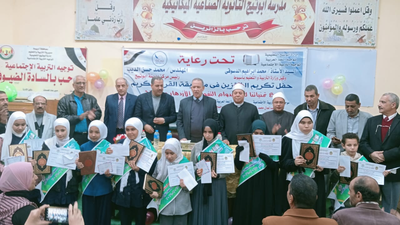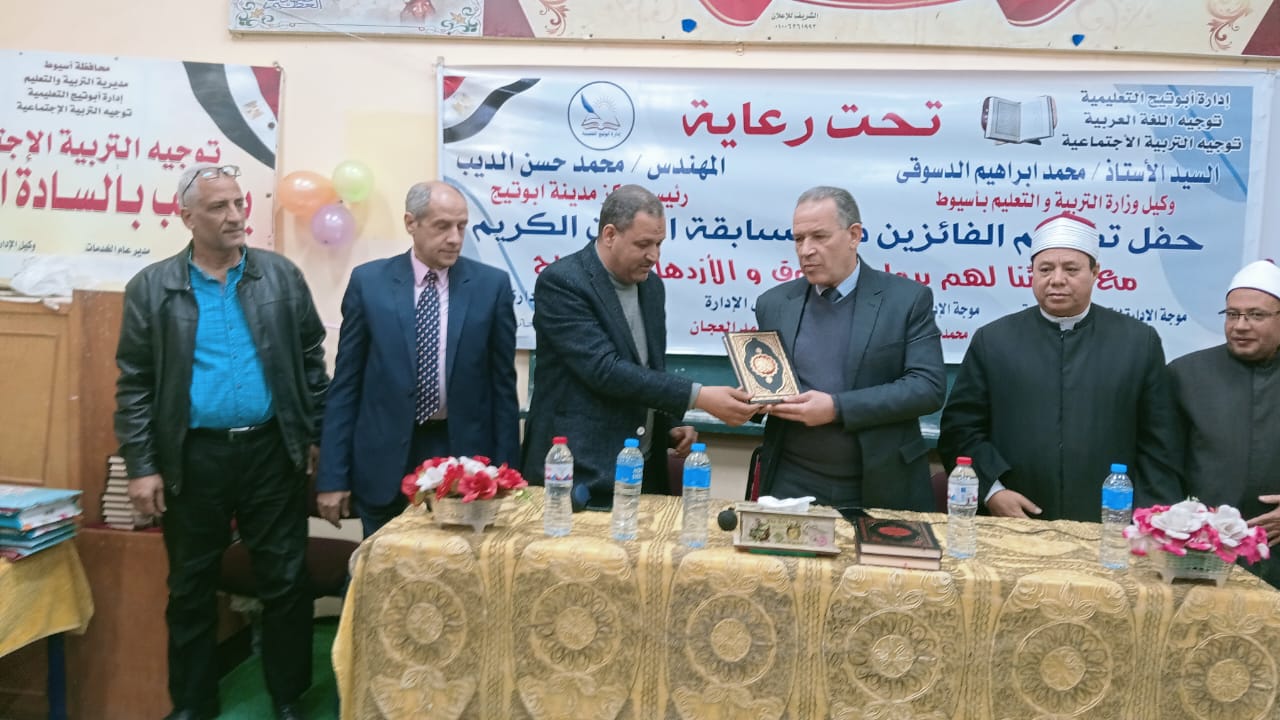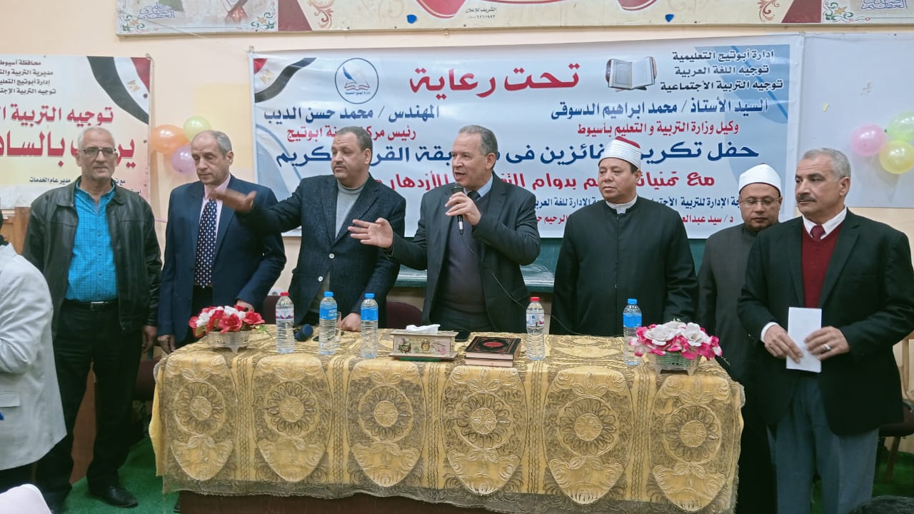 وسط سعادة وفرحة من الحضور .. وكيل وزارة التربية والتعليم بأسيوط يكرم حفظة القرآن الكريم بإدارة أبوتيج التعليمية