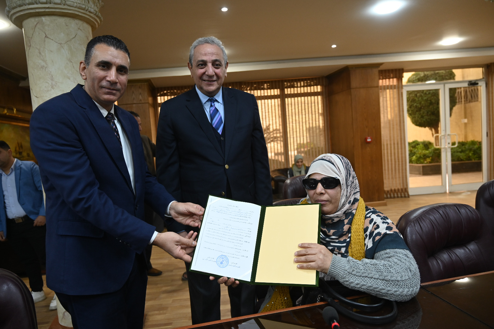 سلّم اللواء أشرف الجندي، محافظ الغربية، اليوم، 35 عقد عمل جديدة بالقطاع الخاص، من بينها عدد من الفرص المخصصة لذوي الهمم، وذلك في إطار حرص المحافظة على إدخال البهجة والفرحة على أهالي الغربية مع بداية العام الميلادي الجديد، ودعم جهود الدولة في تحقيق التمكين الاقتصادي وتوفير فرص عمل حقيقية ومستدامة، بحضور الأستاذ نهاد عبد المعطي، مدير مديرية العمل بالغربية، وسط أجواء مبهجة بديوان عام المحافظة.