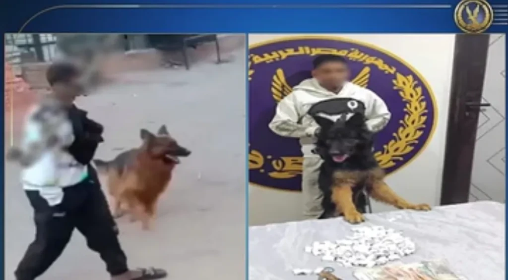فى إطار كشف ملابسات مقطع فيديو تم تداوله بمواقع التواصل الإجتماعى تضمن قيام أحد الأشخاص بإصطحاب كلب وتوجيهه نحو آخر بقصد ترهيبه بالقليوبية بالفحص تبين عدم ورود ثمة بلاغات فى هذا الشأن، وأمكن تحديد وضبط الظاهر بمقطع الفيديو عاطل له معلومات جنائية مقيم بدائرة قسم شرطة ثان شبرا الخيمة بالقليوبية وبحوزته كمية لمخدر الهيروين وسلاح أبيض وبمواجهته إعترف بإرتكاب الواقعة على النحو المشار إليه بقصد المزاح وحيازته للمواد المخدرة بقصد الإتجار وتم بإرشاده ضبط الكلب الظاهر بمقطع الفيديو.