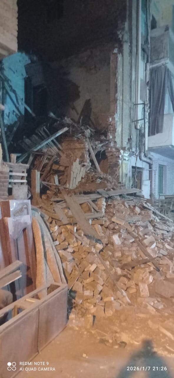 وكان قد انهار جزء من مبنى سكني قديم مقام على حوائط حاملة وأسقف خشبية بارتفاع دورين، وهو خالٍ من السكان، ولم يسفر الحادث عن أي إصابات أو أضرار مادية.