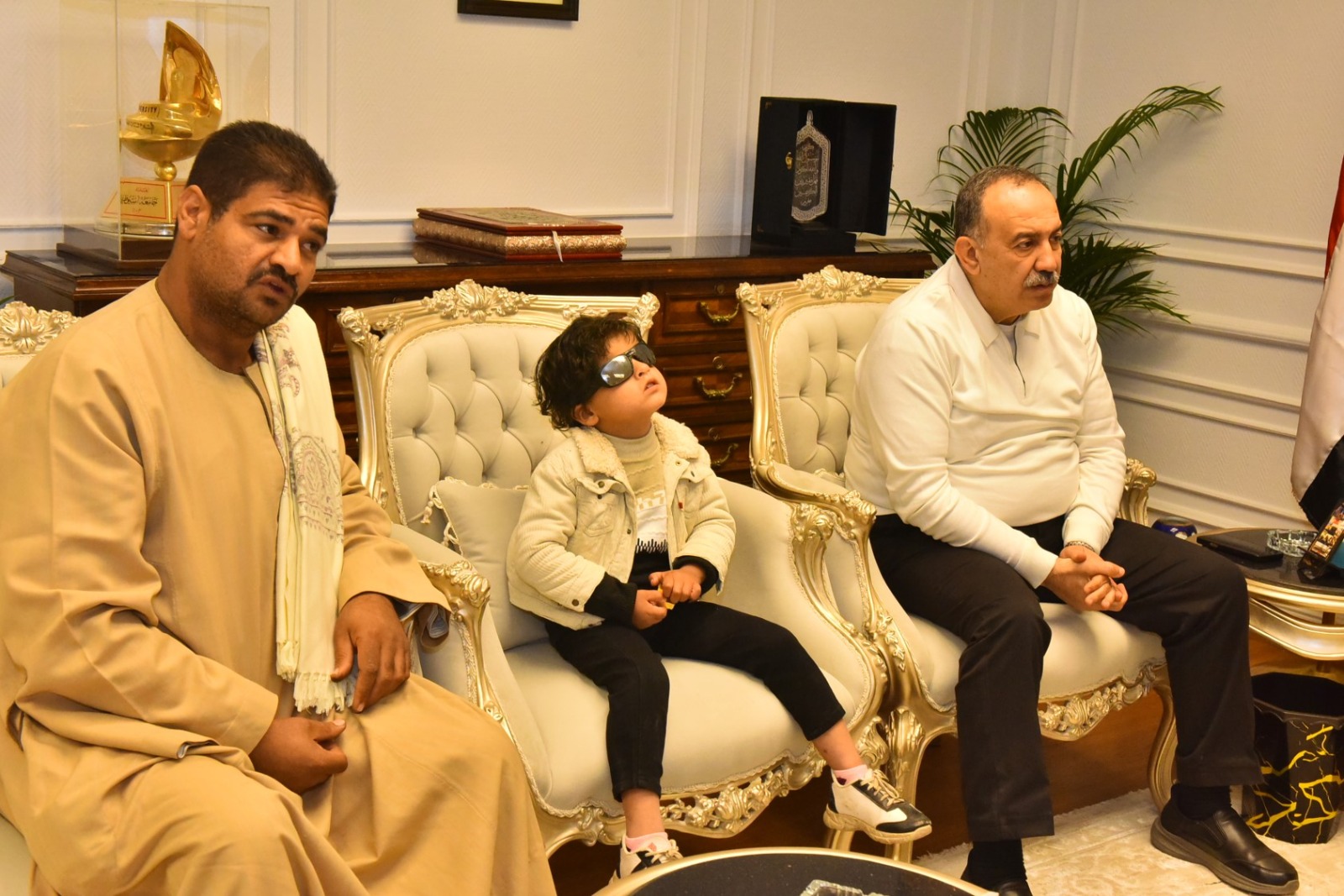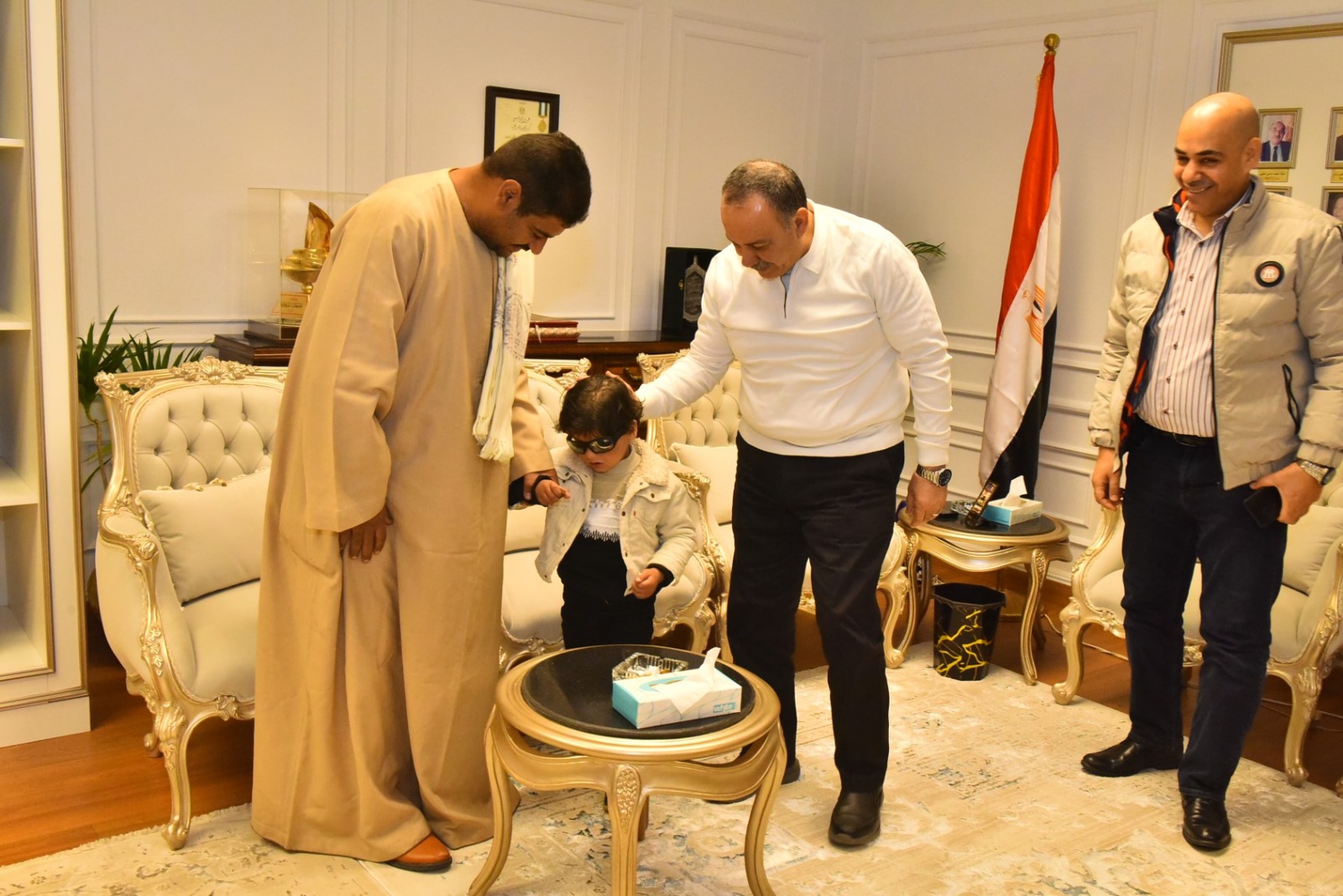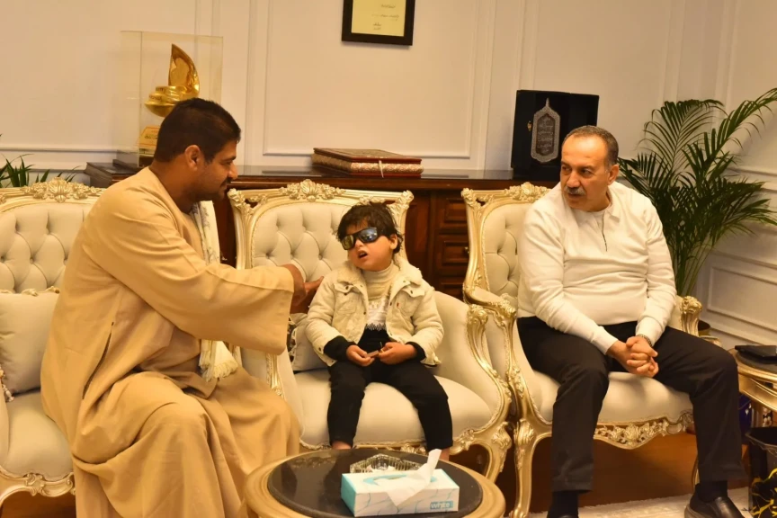 لفتة إنسانية .. محافظ أسيوط يستقبل طفلًا كفيفًا وأسرته ويتكفل بعلاجه ويوجه بسرعة إنهاء الإجراءات الطبية