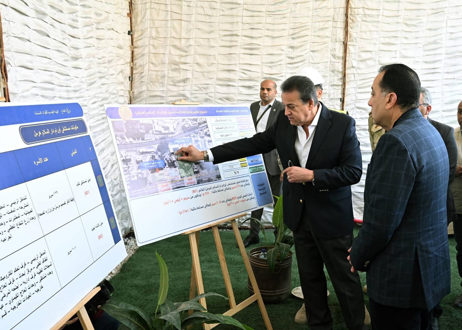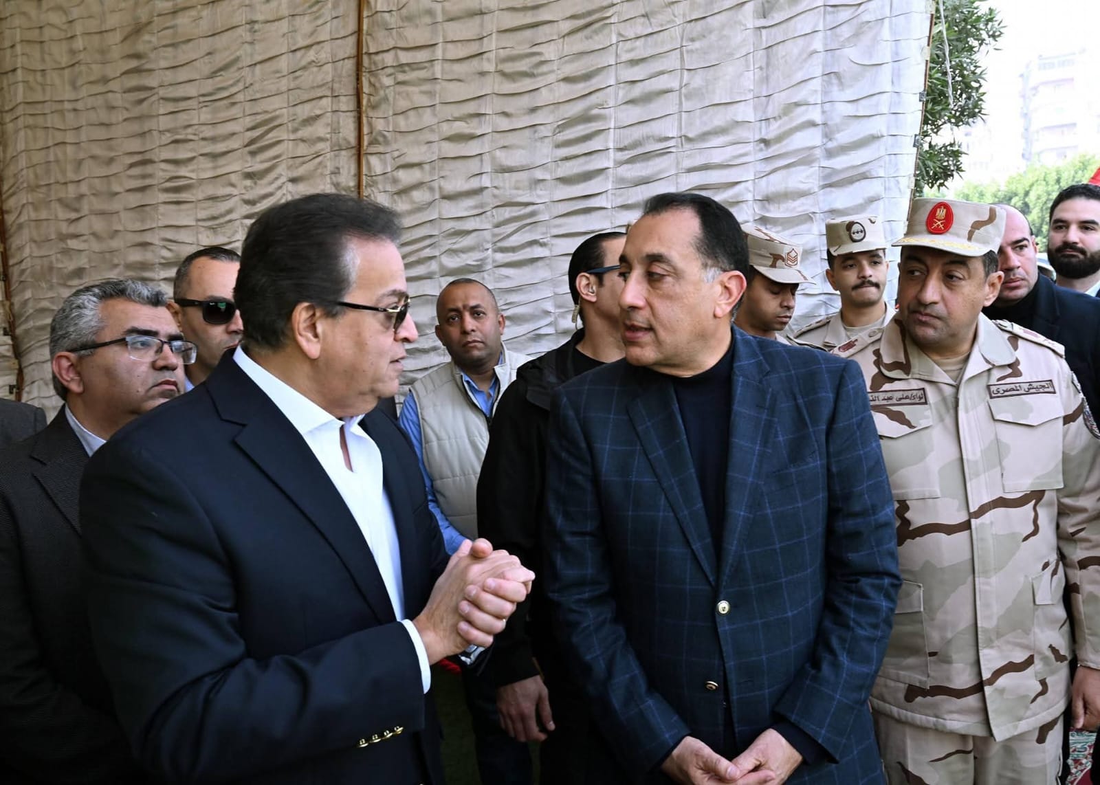 وكان في استقباله لدى وصوله مقر مستشفى أورام دار السلام (هرمل سابقا) الدكتور خالد عبد الغفار، نائب رئيس مجلس الوزراء للتنمية البشرية، وزير الصحة والسكان، والدكتور إبراهيم صابر خليل، محافظ القاهرة، واللواء على عبد النعيم، مدير إدارة الأشغال العسكرية، التابعة للهيئة الهندسية للقوات المسلحة، والدكتور شريف مصطفى، مساعد وزير الصحة والسكان للمشروعات القومية، وعدد من قيادات ومسئولي وزارة الصحة والسكان، والهيئة الهندسية للقوات المسلحة.