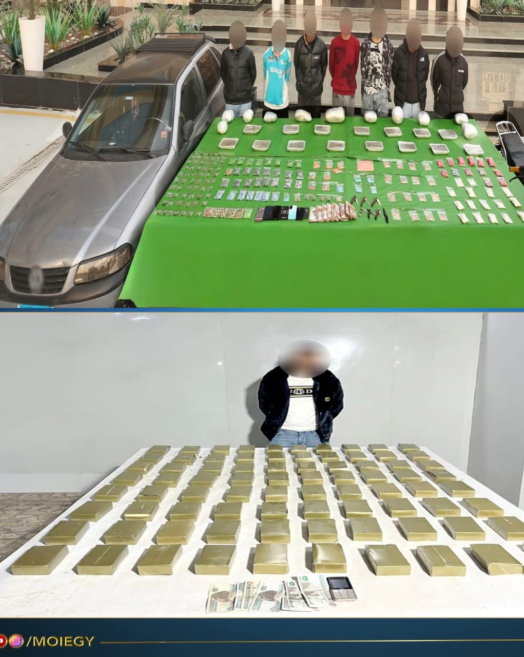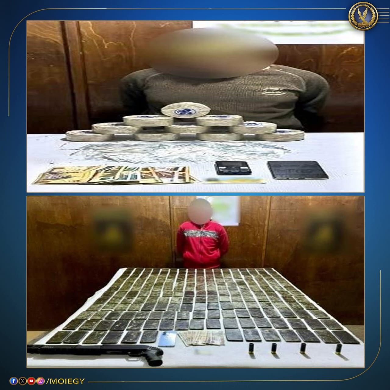 فى إطار مواصلة وزارة الداخلية توجيه الضربات الإستباقية للبؤر الإجرامية جالبى ومتجرى المواد المخدرة والأسلحة النارية غير المرخصة فقد أكدت معلومات وتحريات قطاعى الأمن العام ومكافحة المخدرات والأسلحة والذخائر غير المرخصة بالتنسيق مع أجهزة الوزارة المعنية قيام بؤر إجرامية بنطاق عدة المحافظات تضم عناصر جنائية شديدة الخطورة بجلب كميات من المواد المخدرة والأسلحة النارية غير المرخصة تمهيداً للإتجار بها عقب تقنين الإجراءات تم إستهدافهم بمشاركة قطاع الأمن المركزى ، وقد أسفر التعامل عن مصرع 4 عناصر جنائية شديدة الخطورة سبق الحكم عليهم بالسجن والسجن المؤبد فى جنايات وإتجار بالمخدرات ، سلاح نارى وسرقة بالإكراه ، ضرب بنطاق محافظة "أسوان" وضبط باقى عناصر تلك البؤر.. وبحوزتهم قرابة نصف طن من المواد المخدرة المتنوعة "حشيش ، بانجو ، هيدرو وآيس وهيروين ، كوكايين و7650 قرص مخدر – 29 قطعة سلاح نارى "رشاش جرينوف و8 بنادق آلية ، 4 بنادق خرطوش و16 فرد خرطوش هذا وتقدر القيمة المالية للمواد المخدرة المضبوطة قرابة 73 مليون جنيه تم إتخاذ الإجراءات القانون