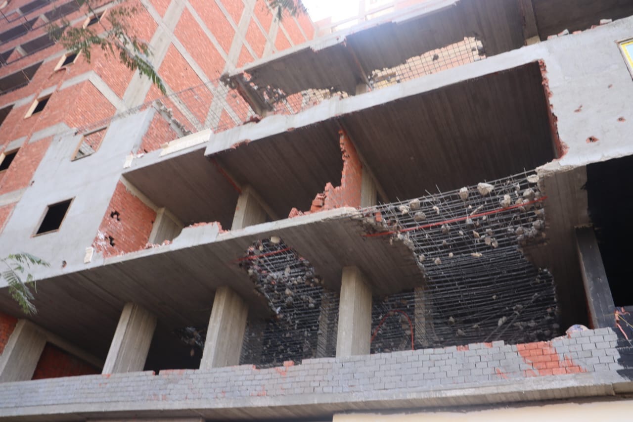 وتابعت الحملة أعمال الإزالة الفورية للعقار الأول الذي أقيم على مساحة 600 متر، وهو عبارة عن برج سكني تحت الإنشاء مكون من دور أرضي وطابقين، كما شملت الأعمال إزالة العقار الثاني المكون من أرضي و12 طابقاً علوياً، والذي تم تشييده بالكامل بالمخالفة للقانون وبدون الحصول على أي تراخيص رسمية من الجهات المختصة، مما استوجب التدخل الفوري لإزالته حتى سطح الأرض حيث وجه المحافظ باستمرار الازالات حتي الانتهاء من الازالة بالكامل.