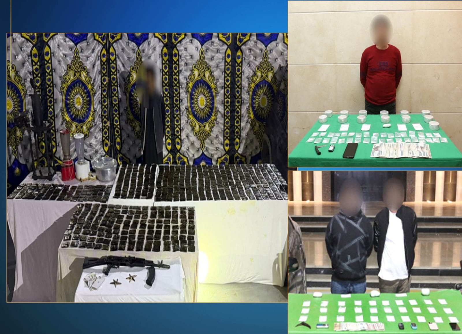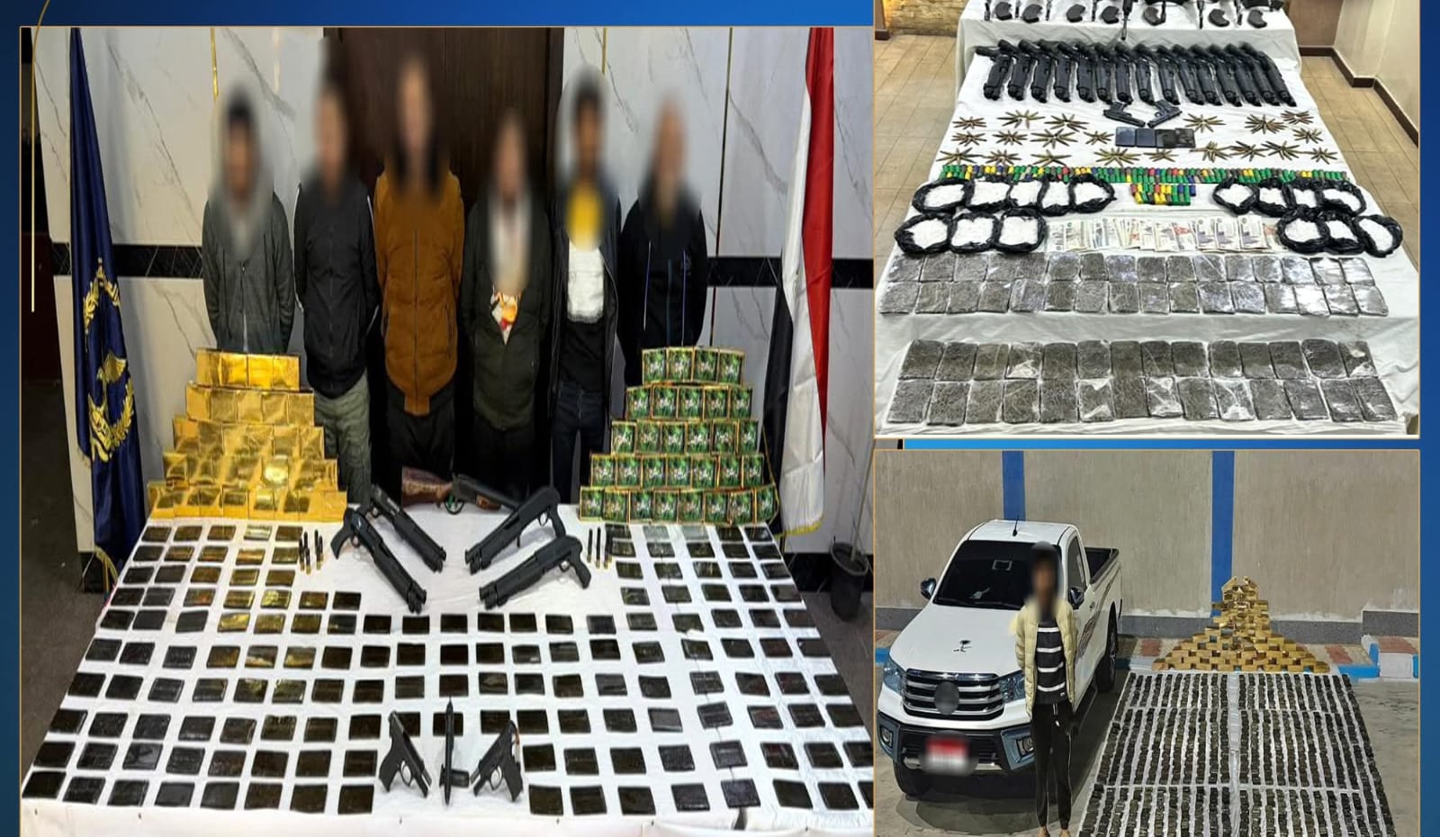 فى إطار مواصلة وزارة الداخلية توجيه الضربات الإستباقية للبؤر الإجرامية جالبى ومتجرى المواد المخدرة والأسلحة النارية غير المرخصة فقد أكدت معلومات وتحريات قطاعى الأمن العام ومكافحة المخدرات والأسلحة والذخائر غير المرخصة بالتنسيق مع أجهزة الوزارة المعنية قيام بؤر إجرامية بنطاق عدد من المحافظات تضم عناصر جنائية شديدة الخطورة بجلب كميات من المواد المخدرة والأسلحة النارية غير المرخصة تمهيداً للإتجار بها.