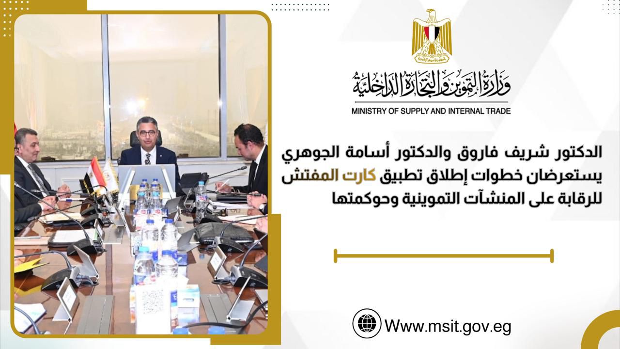 في إطار إحكام الرقابة على الأسواق وسلاسل الإمداد، والتعامل السريع مع أية مخالفات أو أزمات، اجتمع الدكتور شريف فاروق مع الدكتور أسامة الجوهري، لبحث سبل التعاون المشترك في ملف تطوير منظومة الرقابة التموينية باستخدام أدوات التحول الرقمي، ومتابعة إطلاق تطبيق "كارت المفتش" بهدف إحكام الرقابة الرقمية على المنشآت التموينية بمختلف أنواعها، من خلال تمكين المفتشين من تنفيذ أعمال التفتيش باستخدام أدوات رقمية موحدة، بما يضمن توثيق عمليات المرور والرقابة لحظيًا، ورصد المخالفات التموينية وتصنيفها وفق طبيعتها وحدتها.