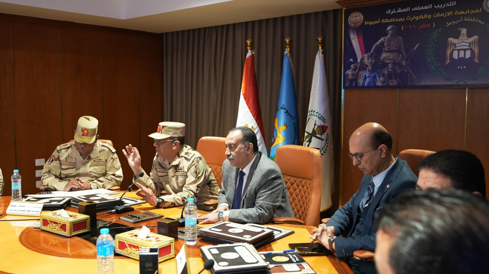جاء ذلك بحضور الدكتور أحمد المنشاوي رئيس جامعة أسيوط، واللواء سيد رضوان مساعد قائد المنطقة الجنوبية لشؤون الأزمات والكوارث، والمحاسب عدلي أبوعقيل سكرتير عام المحافظة والأستاذ خالد عبدالرؤوف سكرتير عام المحافظة المساعد والعميد أركان حرب محمد موسى رئيس فرع التخطيط بقيادة قوات الدفاع الشعبي والعسكري، والعميد أحمد بصل رئيس لجنة هيئة عمليات القوات المسلحة، والعميد أركان حرب هاني الفاروق المستشار العسكري للمحافظة، والعقيد جوي محمد محمد علي مساعد المستشار العسكري، والرائد أحمد أسامة مخلوف مساعد المستشار العسكري، وأعضاء لجنة قوات الدفاع الشعبي والعسكري، وسيد مدير مركز سيطرة الشبكة الوطنية للطوارئ والسلامة العامة، ورؤساء المراكز والأحياء، ومديري المديريات الخدمية، ورؤساء الشركات والمرافق، وممثلي الأزهر والكنيسة.