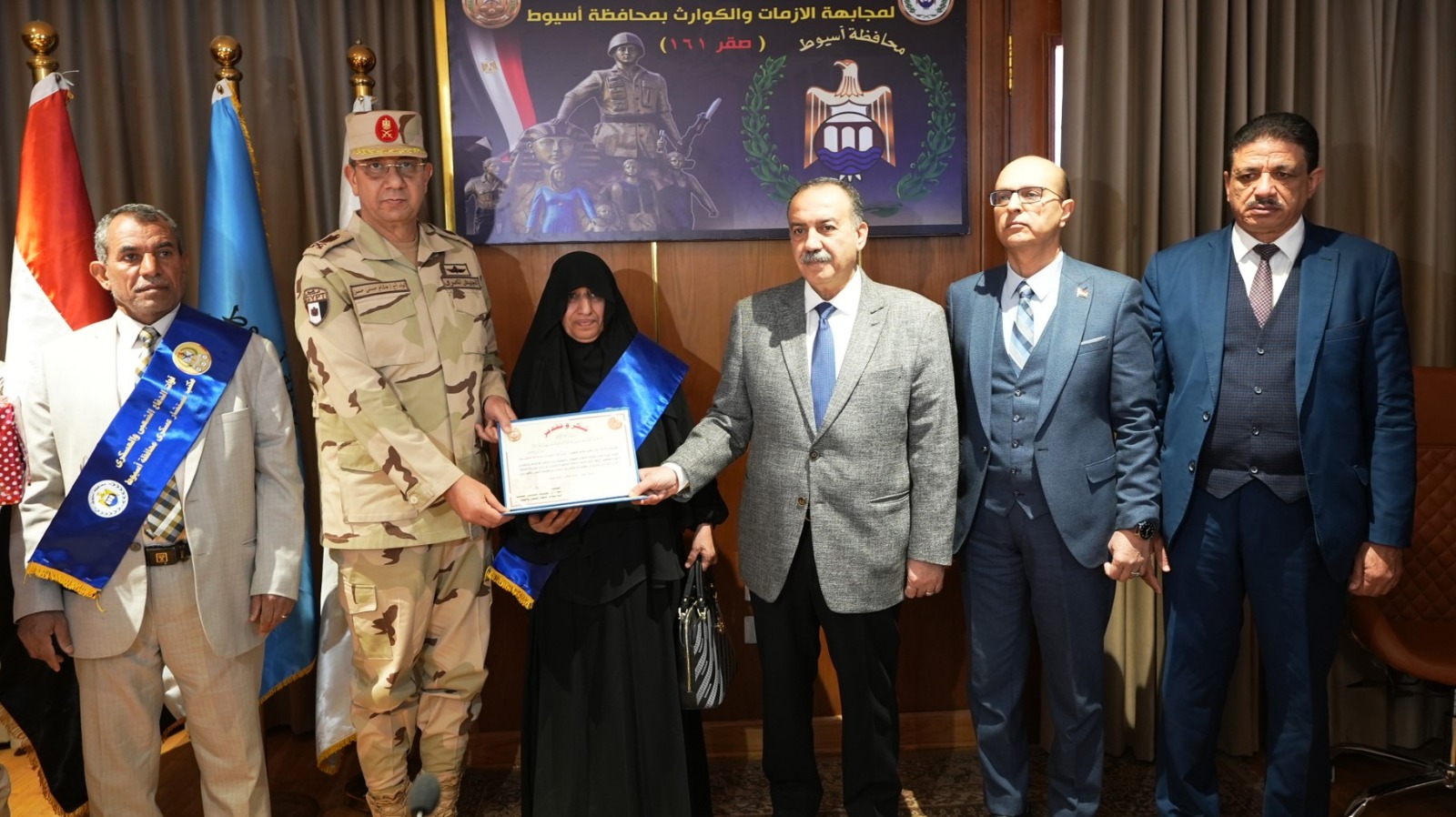 محافظ أسيوط وقائد قوات الدفاع الشعبي والعسكري يستعرضان الفكرة الاستراتيجية التعبوية لمشروع ”صقر 161” ويكرمان أسر الشهداء