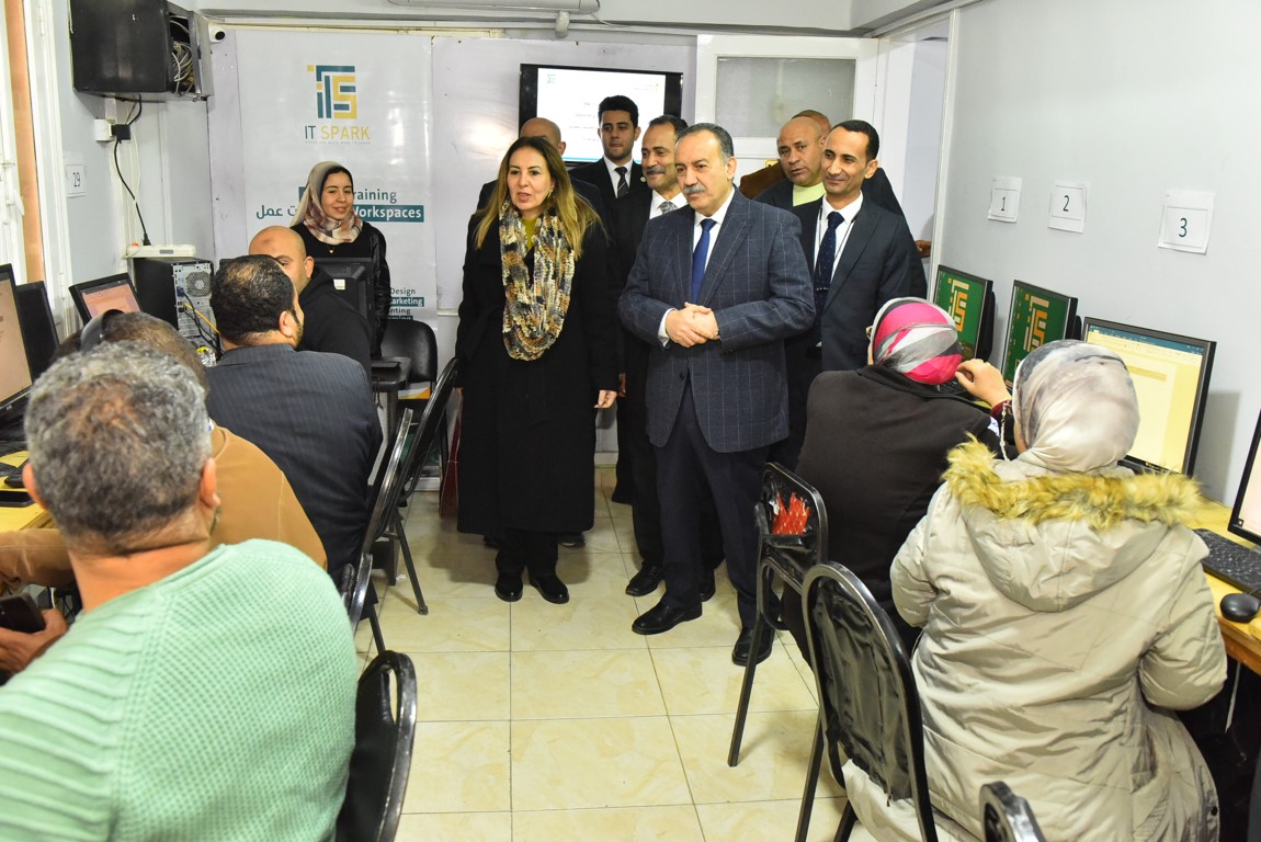 وتفقد المحافظ ومرافقوه أقسام المركز المختلفة، واستمعوا إلى شرح تفصيلي حول إمكاناته وبرامجه التدريبية، والتي يتم تنفيذها بالتعاون مع وزارة الاتصالات وتكنولوجيا المعلومات، ويقدم المركز حزمة متنوعة من الدورات المتخصصة في مجالات تكنولوجيا المعلومات وبرامج التمكين الاقتصادي الرقمي، بما يسهم في إعداد كوادر مؤهلة وقادرة على تلبية احتياجات سوق العمل ووظائف المستقبل.