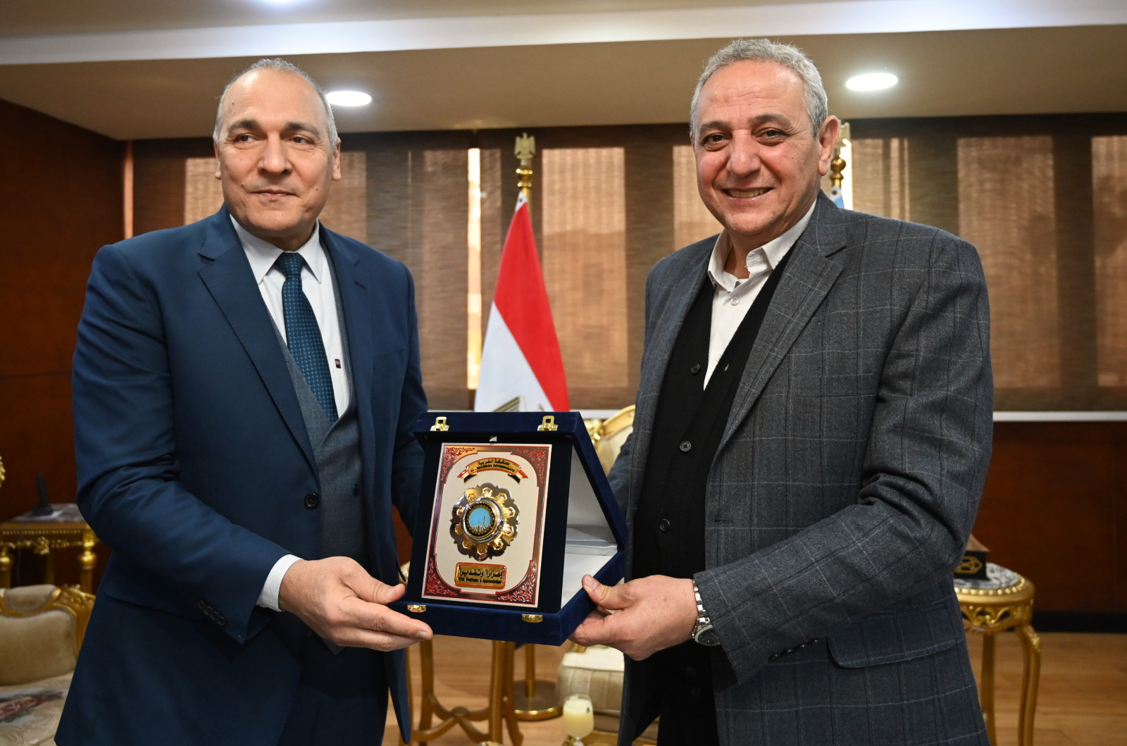 وفي ختام اللقاء، قامت الهيئة العامة لتعليم الكبار بإهداء درع الهيئة إلى اللواء أشرف الجندي، محافظ الغربية، تقديرًا لدعمه الدائم وجهوده المستمرة في إنجاح برامج تعليم الكبار ومحو الأمية، فيما بادر المحافظ بإهداء درع تذكاري لوفد الهيئة، تأكيدًا على عمق التعاون المشترك وتقديرًا للدور الوطني الذي تقوم به الهيئة في خدمة المجتمع.