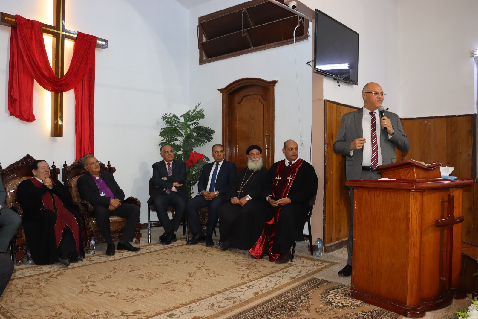 بالصور .. محافظ القليوبية يشارك في مراسم تنصيب القس رفيق دويب راعياً للكنيسة الإنجيلية ببنها