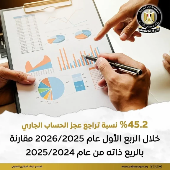 تراجع عجز حساب المعاملات الجارية بنسبة 45.2% خلال الربع الأول عام 2026/2025