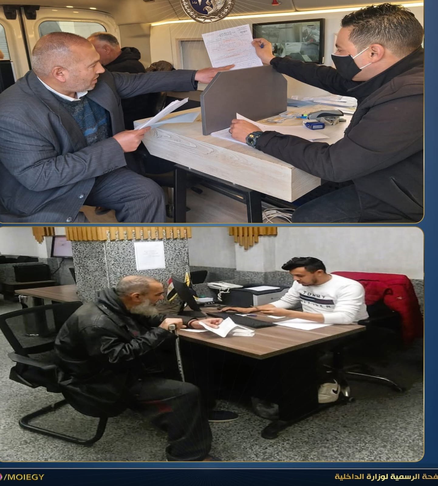 فى إطار سياسة وزارة الداخلية الهادفة فى أحد محاورها إلى تفعيل الدور المجتمعى لكافة القطاعات الأمنية وإعتماد الإجراءات التى من شأنها توفير حصول المواطنين راغبى إستخراج الأوراق الثبوتية بسهولة ويسر.. فقد واصل قطاع الأحوال المدنية إيفاد قوافل مُجهزة فنياً ولوجيستياً لتقديم كافة الخدمات التى يقدمها القطاع للمواطنين من إستخراج بطاقات الرقم القومى المُصدرات المُميكنة بنطاق محافظات القاهرة والجيزة والقليوبية والمنيا أسيوط والدقهلية والبحيرة والمنوفية وشمال سيناء مطروح حيث أسفرت جهود تلك القوافل عن إستخراج عدد 6462 بطاقة رقم قومى وعدد 33688 مصدراً مميكناً.