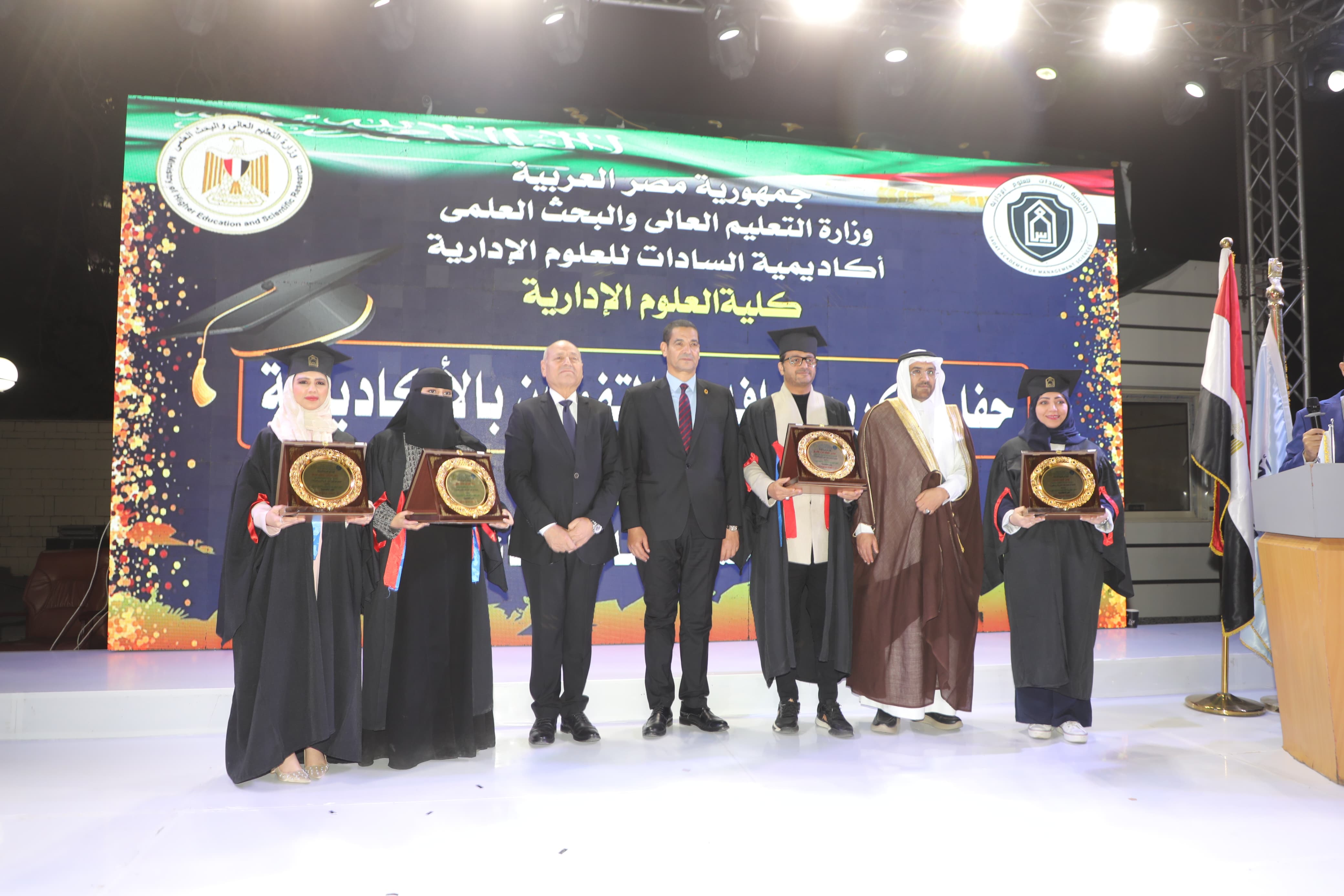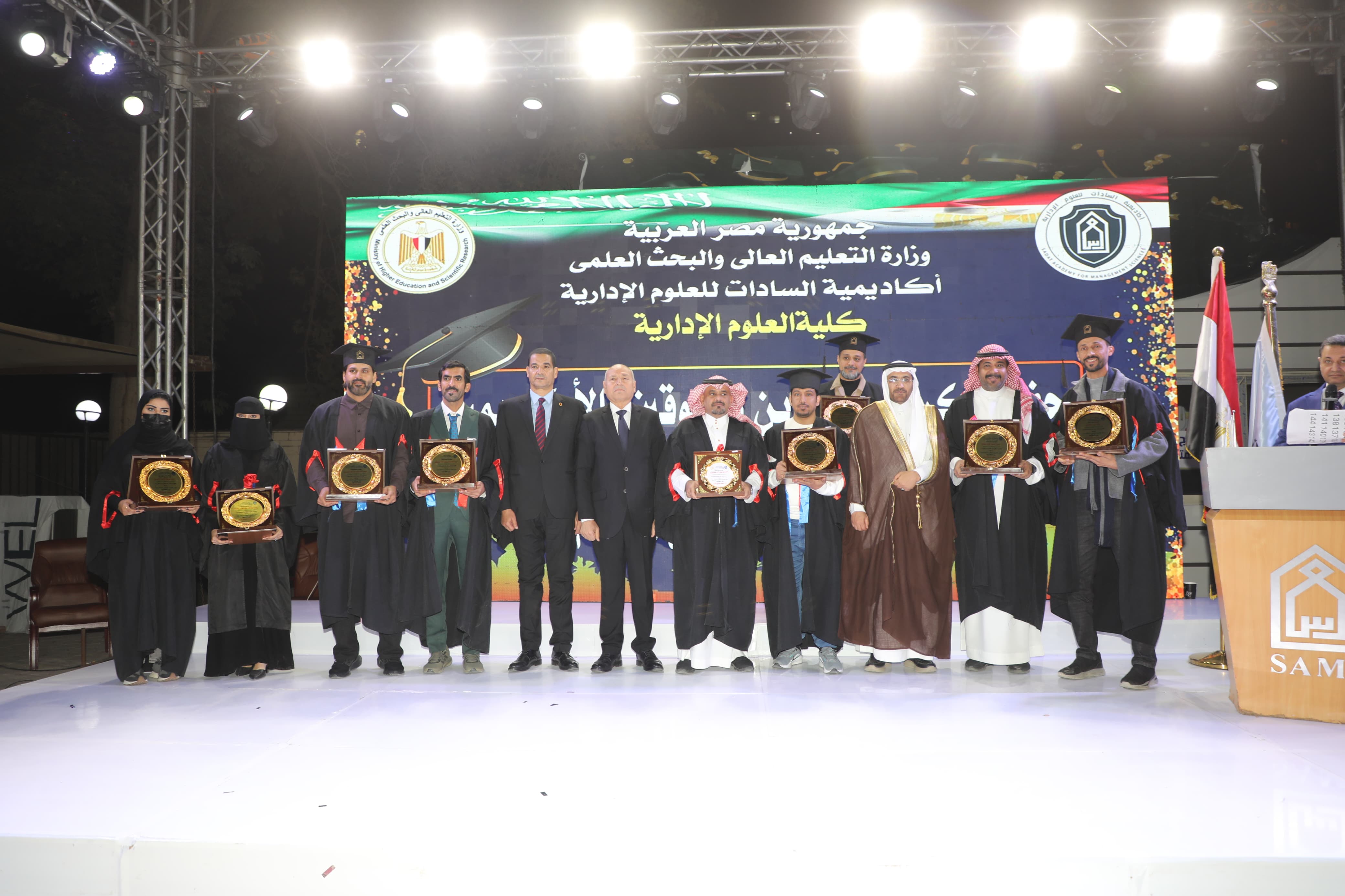 شهد د. إبراهيم صابر محافظ القاهرة حفل تكريم الخريجين من الطلاب الدارسين الوافدين المتفوقين، والحاصلين على درجة الدكتوراة بأكاديمية السادات للعلوم الإدارية كلية العلوم الإدارية بحضور د. محمد صالح هاشم حماد رئيس الأكاديمية ، ود. فهد مطر نائب المستشار الثقافى السعودى ، وعدد من أعضاء هيئة التدريس بالاكاديمية، وأعضاء مجلس الجامعة .