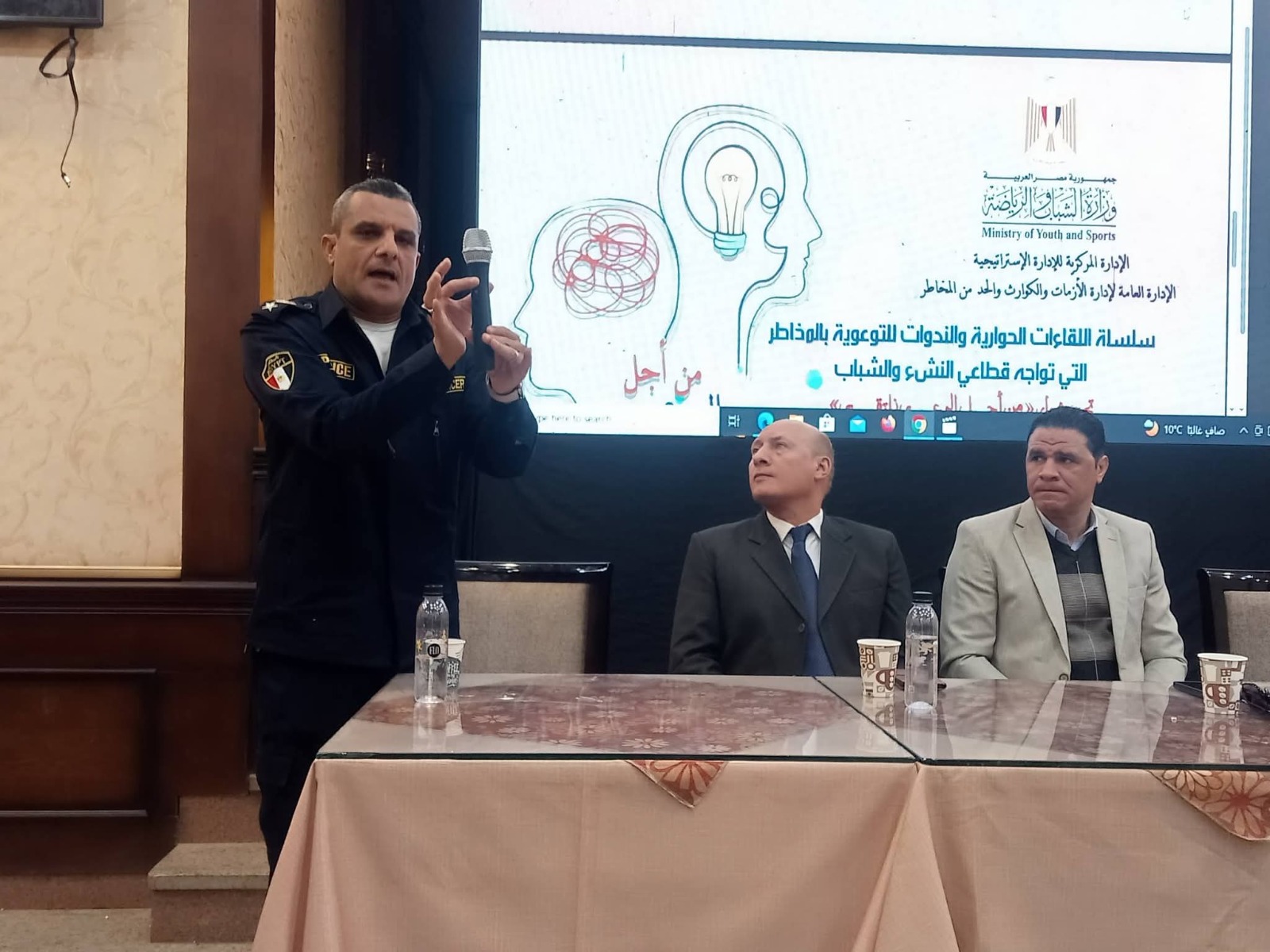 وأوضح المحافظ أن مديرية الشباب والرياضة بأسيوط، برئاسة أحمد سويفي وكيل الوزارة، نظمت سلسلة من اللقاءات الحوارية والندوات التوعوية تحت شعار "من أجل الوعي نلتقي" – الموسم الثالث، وذلك بالتعاون مع الإدارة المركزية للإدارة الاستراتيجية (الإدارة العامة لإدارة الأزمات والكوارث) بوزارة الشباب والرياضة، بمشاركة نحو 100 من العاملين بالمديرية والهيئات الشبابية والرياضية ومسؤولي إدارة الأزمات، بنادي أسيوط الرياضي.