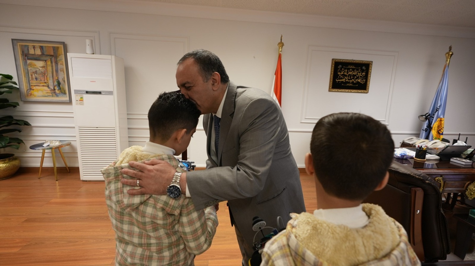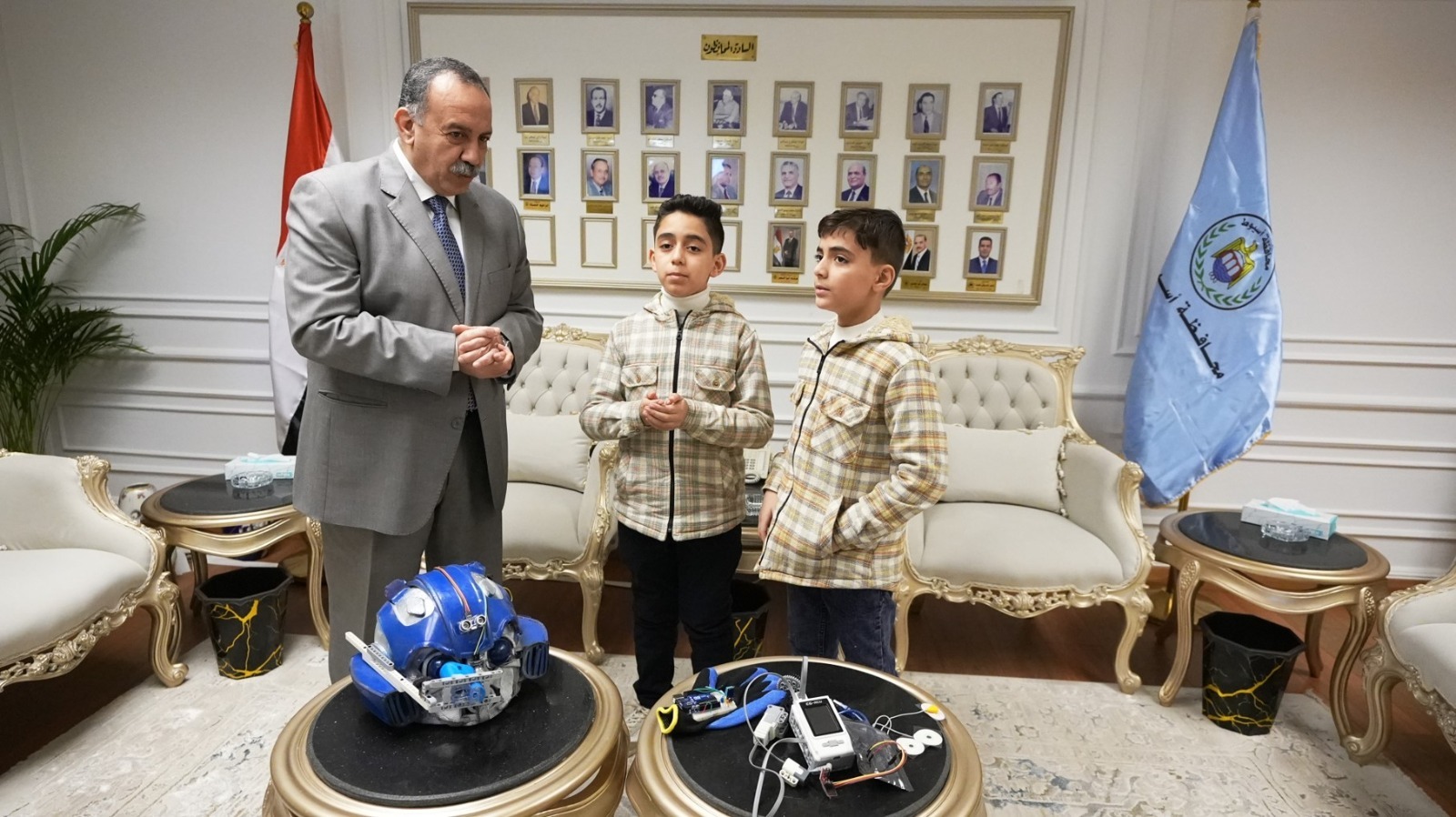 محافظ أسيوط يستقبل مخترعي ”الخوذة الذكية” من طلاب الابتدائي ويكافئهما ويقرر ضمهما كأول أعضاء نادي الذكاء الاصطناعي