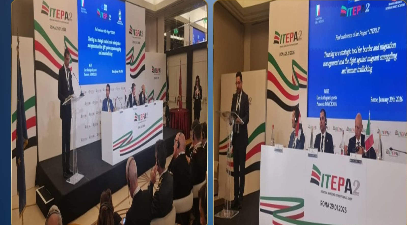 فى إطار إستراتيجية وزارة الداخلية الرامية إلى تعزيز محاور التعاون وتبادل الخبرات مع كافة الكيانات الأمنية المناظرة للدول الصديقة لتدريب كوادرها بهدف تعزيز قدراتهم لمكافحة مختلف أنماط الجرائم الوطنية والعابرة للحدود.. فقد تم تنظيم ورشة العمل الختامية لبروتوكول التعاون بين وزارة الداخلية المصرية متمثلة فى أكاديمية الشرطة والشرطة الإيطالية (ITEPA) الخاص بتدريب الكوادر الأفريقية فى مجال مكافحة الهجرة غير الشرعية الممول من الإتحاد الأوروبى وذلك بالعاصمة الإيطالية روما.