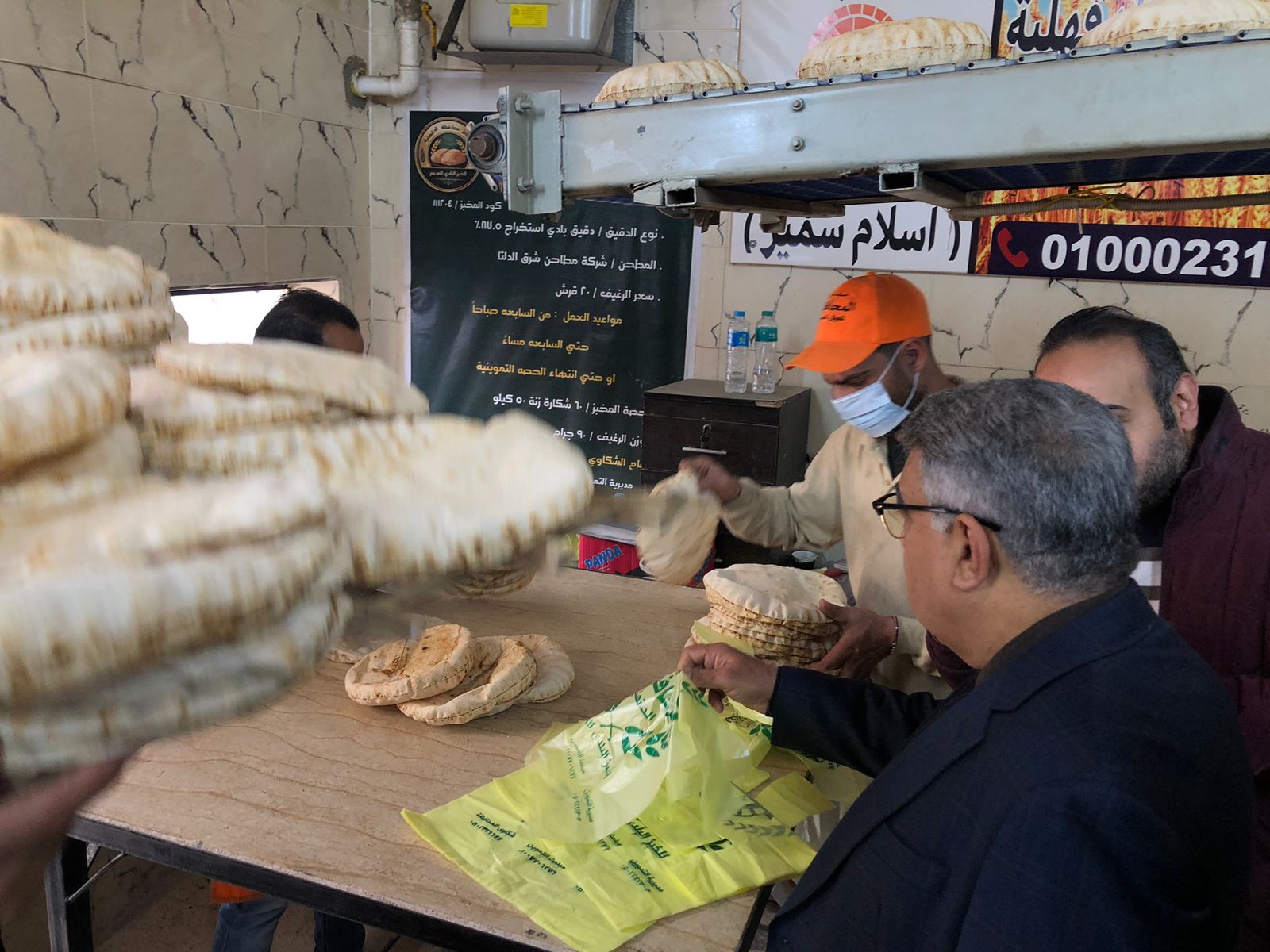كما تفقد محافظ الدقهلية الفرن الافرنجي بذات المكان مشددا على الالتزام بوزن الرغيف الفينو 35 جرام بواحد جنيه، وكلف المحافظ، المحاسب علي حسن، وكيل وزارة التموين، بالتنسيق مع اللواء عمرو عبد الرحمن المشرف على تشغيل مخبز المحافظة، بالمتابعة المستمرة لسير العمل داخل المخبز، والتأكد من الالتزام بالضوابط التموينية، وجودة الرغيف، وحسن معاملة المواطنين، مع اتخاذ الإجراءات القانونية الفورية حال رصد أي تجاوزات، كما وجه للأستاذ محمد أمين رئيس حي غرب المنصورة بمتابعة مستوى النظافة بمحيط المخبزين على مدار اليوم.