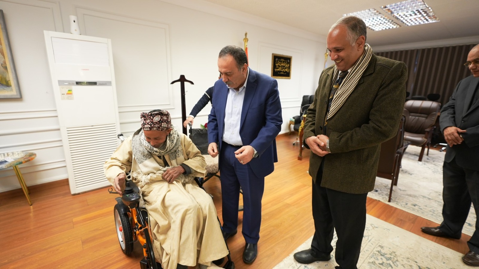 لفتة إنسانية .. محافظ أسيوط يمنح مسنًا كرسياً متحركاً كهربائياً دعمًا لحالته الصحية