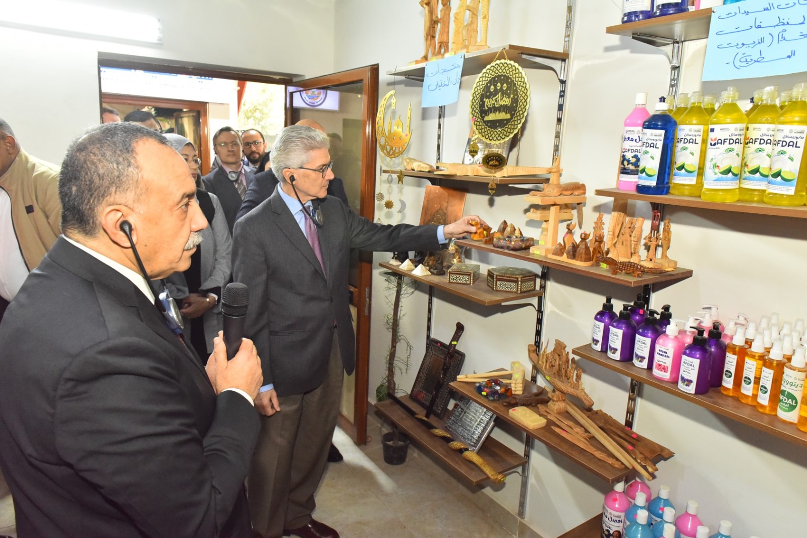 واصل اللواء دكتور هشام أبو النصر، محافظ أسيوط، جولاته التفقدية برفقه وفد رفيع المستوى من مشروع "دعم الاتحاد الأوروبي للتجارة والصناعة – تجارة TIGARA"، برئاسة الدكتور نيكولاس زايميس، رئيس قسم الاستثمار والتجارة بمفوضية الاتحاد الأوروبي بالقاهرة، وبمشاركة ممثلين عن منظمة الأمم المتحدة للتنمية الصناعية (اليونيدو) ووزارة التنمية المحلية حيث زار بازار "كيان" الكائن أسفل كوبري فيصل بحي غرب، للاطلاع على تجربة المحافظة في تحويل المواقع غير المستغلة إلى وحدات إنتاجية تدعم الشباب والأسر المنتجة.