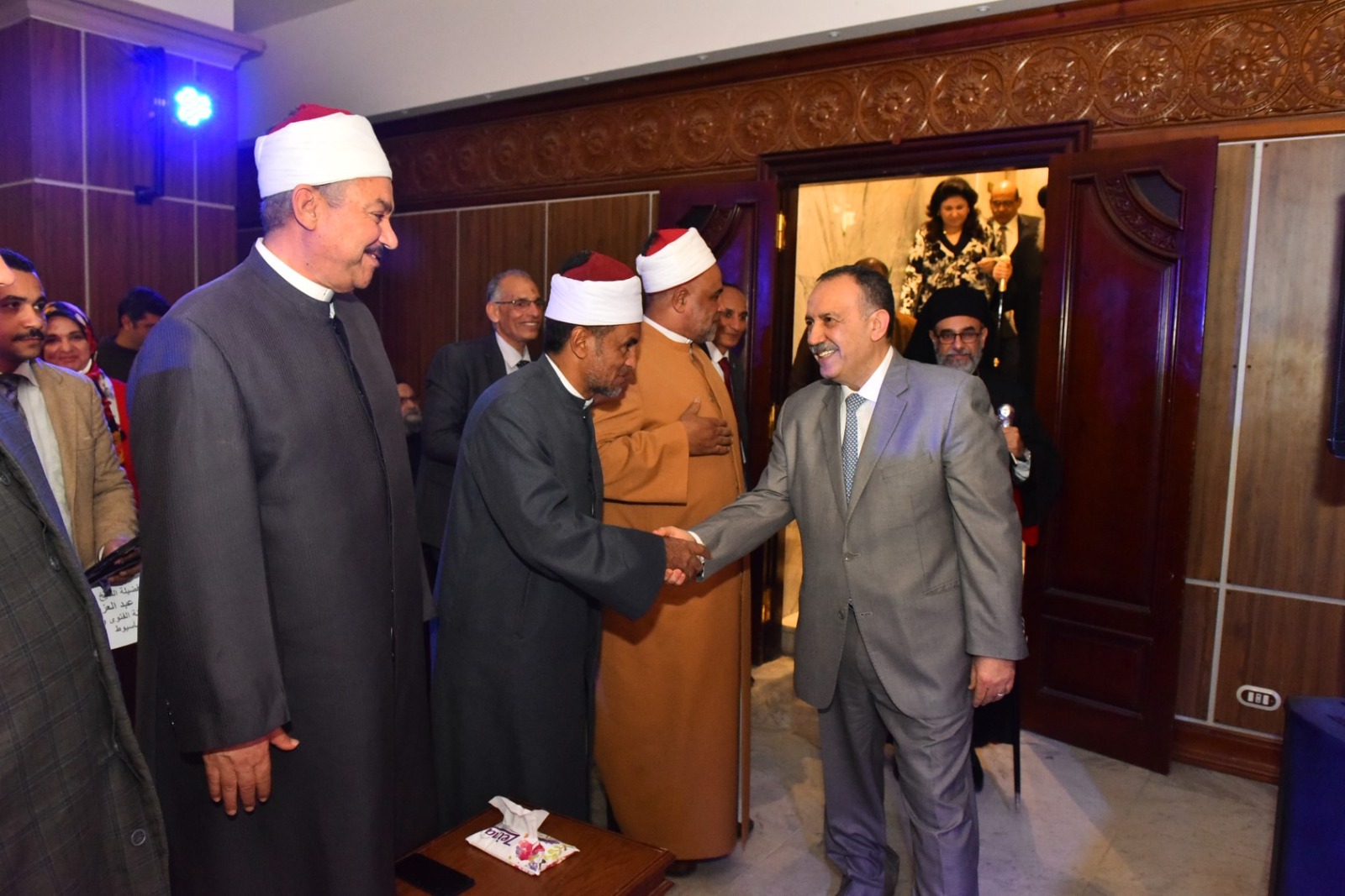 وفي كلمته، أكد محافظ أسيوط أن السلام والمحبة متجذران في نسيج المجتمع الأسيوطي، مشددًا على أن أبناء المحافظة، مسلمين ومسيحيين، يجمعهم وطن واحد وهوية واحدة، قائلًا نحن جميعًا مصريون، ومسئوليتنا أن نراعي الله في أعمالنا ونبني مستقبلًا قائمًا على التسامح وقبول الآخر، موضحًا أن ما تنعم به مصر من أمن واستقرار وتماسك شعبي يمثل قاعدة أساسية لتحقيق التنمية الحقيقية والمستدامة، تنفيذًا لتكليفات القيادة السياسية وعلى رأسها الرئيس عبد الفتاح السيسي.