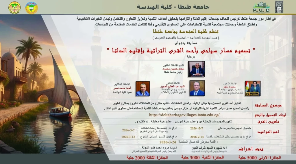 جامعة طنطا تطلق المسابقة الإقليمية ”تصميم مسار سياحي لقرية تراثية … من الفكرة إلى منتج قابل للتطبيق”