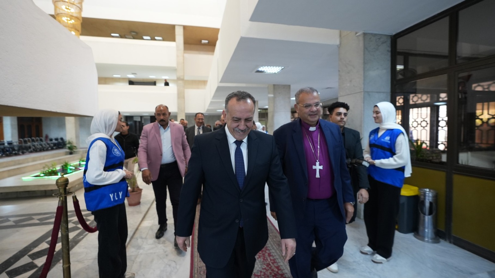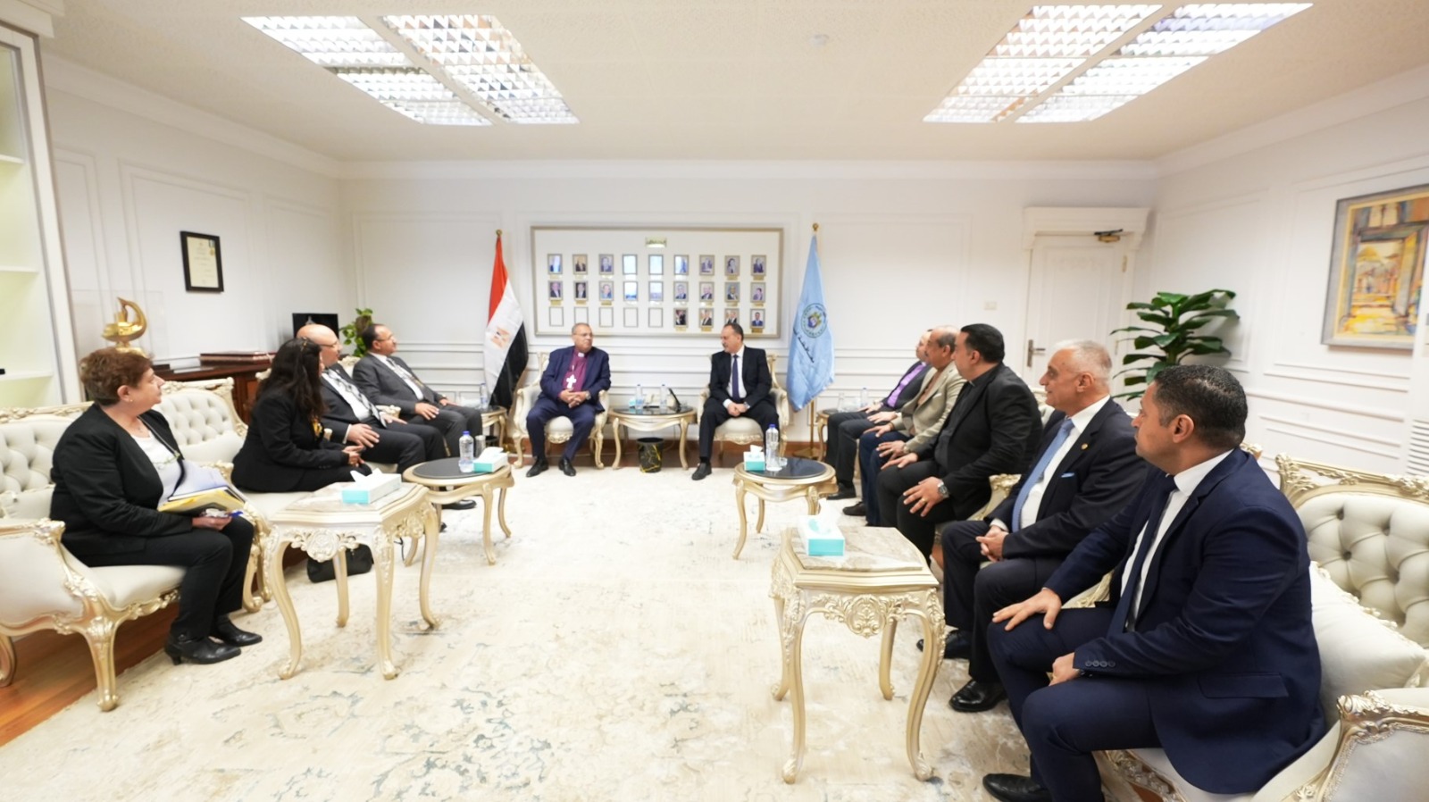 استقبل اللواء الدكتور هشام أبو النصر، محافظ أسيوط، اليوم، بمكتبه بديوان عام المحافظة، الدكتور القس أندريه زكي، رئيس الطائفة الإنجيلية بمصر ورئيس الهيئة القبطية الإنجيلية للخدمات الاجتماعية، والوفد المرافق له، في مستهل زيارته للمحافظة، والتي تتضمن تسليم عدد من الكراسي المتحركة لمدارس التربية الفكرية على مستوى أسيوط، وتدشين عدد من المبادرات التنموية.