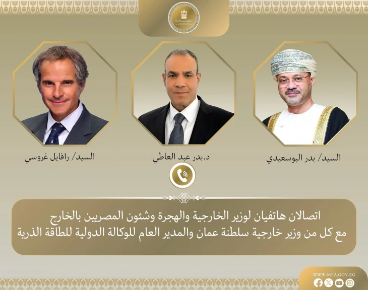 وزير الخارجية يبحث جهود خفض التصعيد في المنطقة مع نظيره العماني والمدير العام للوكالة الدولية للطاقة الذرية