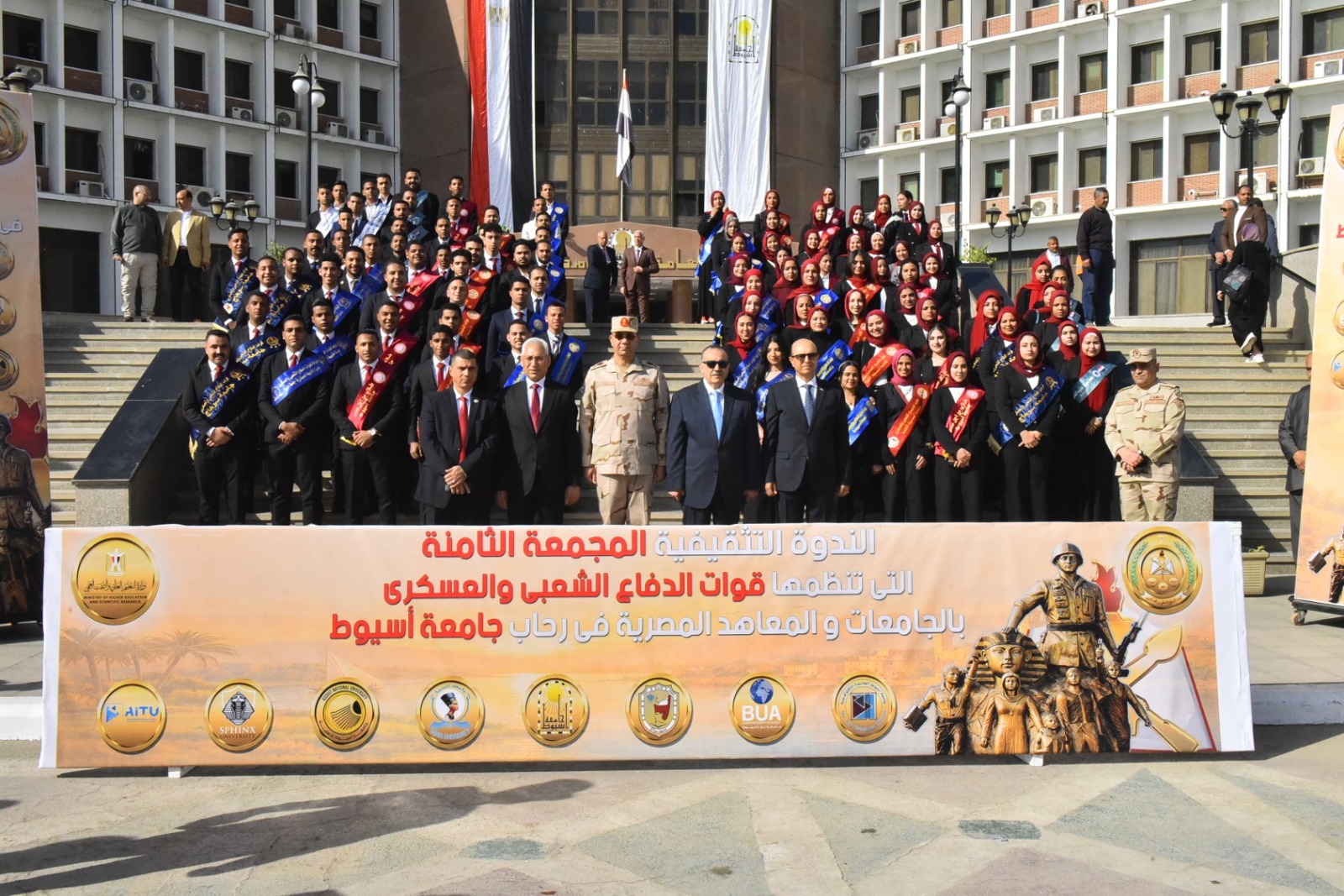 شهد اللواء دكتور هشام أبوالنصر، محافظ أسيوط، واللواء أركان حرب هشام حسني حسن، قائد قوات الدفاع الشعبي والعسكري، والدكتور أحمد المنشاوي، رئيس جامعة أسيوط، فعاليات الندوة التثقيفية المجمعة الثامنة لقوات الدفاع الشعبي والعسكري، التي نظمتها قيادة قوات الدفاع الشعبي والعسكري بالجامعات والمعاهد المصرية، وذلك في رحاب جامعة أسيوط، بحضور الدكتور مينا عماد نائب المحافظ، والدكتور عصام فرحات رئيس جامعة المنيا، والدكتور جمال تاج رئيس جامعة أسيوط التكنولوجية، والدكتور منصور كباش رئيس جامعة سفنكس، وشوكت صابر أمين عام جامعة أسيوط، والعميد أركان حرب هاني محمد الفاروق المستشار العسكري للمحافظة، والمقدم محمد ربيع مدير إدارة التربية العسكرية بجامعة أسيوط، وعدد من القيادات العسكرية والتنفيذية والجامعية، وطلاب الجامعات المصرية المشاركة في الندوة، وهي جامعات المنيا، وسوهاج، وجامعة أسيوط الأهلية، وجامعة أسيوط التكنولوجية، وجامعة أسيوط التكنولوجية الدولية، وسفنكس، وجامعة بدر، إلى جانب عمداء كليات جامعة أسيوط، وطلاب من ذوي الهمم، وأسر الشهداء، وذلك في إطار التعاون المشترك، لنشر الوعي الوطني والفكر المستنير بين الشباب، ودعم أهداف رؤية مصر 2030.