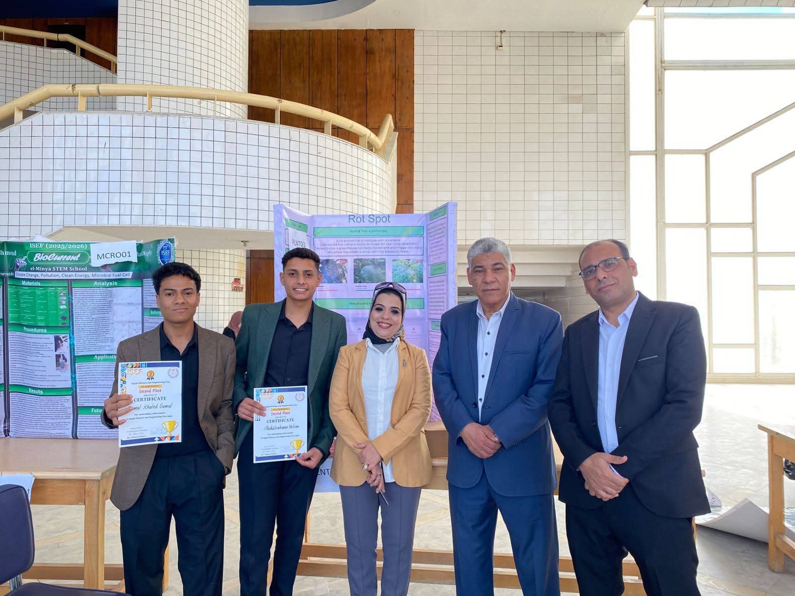 بمدرسة (المتفوقين فى العلوم والتكنولوجيا STEM اسيوط)لافتا إلى أن هذا الإنجاز يعكس مستوى التميز العلمي والبحثي لطلابنا وجهود الإشراف والدعم الفني المقدم من فريق عمل مركز التطوير التكنولوجي بالمديرية تحت رعاية وإشراف احمد عبد الله وكيل المديرية وسيد الشريف مدير عام الشؤون التنفيذية بالمديرية والدكتور فريد الخطيب رئيس لجنة التحكيم للمسابقة ومحمود حماد تونى مدير مركز التطوير التكنولوجى بالمديرية و محمد جابر منيق المحافظة والدكتورة أميمة كامل منسق مساعد المسابقة و نهى فاروق ونيرمين فاروق وعبير على اللجنة التنسيقية للمسابقة .