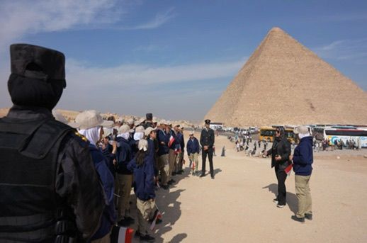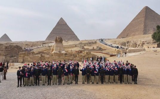 وتضمنت الزيارة جولة شباب وطلائع المناطق الحضارية الجديدة بالأهرامات حيث توجهوا لزيارة هذا الأثر الذى يُعد واحد من عجائب الدنيا ، وهنا يقف الزائر أمام معجزة خالدة تتحدى الزمن وتروى قصة عبقرية الإنسان المصرى عبر آلاف السنين .