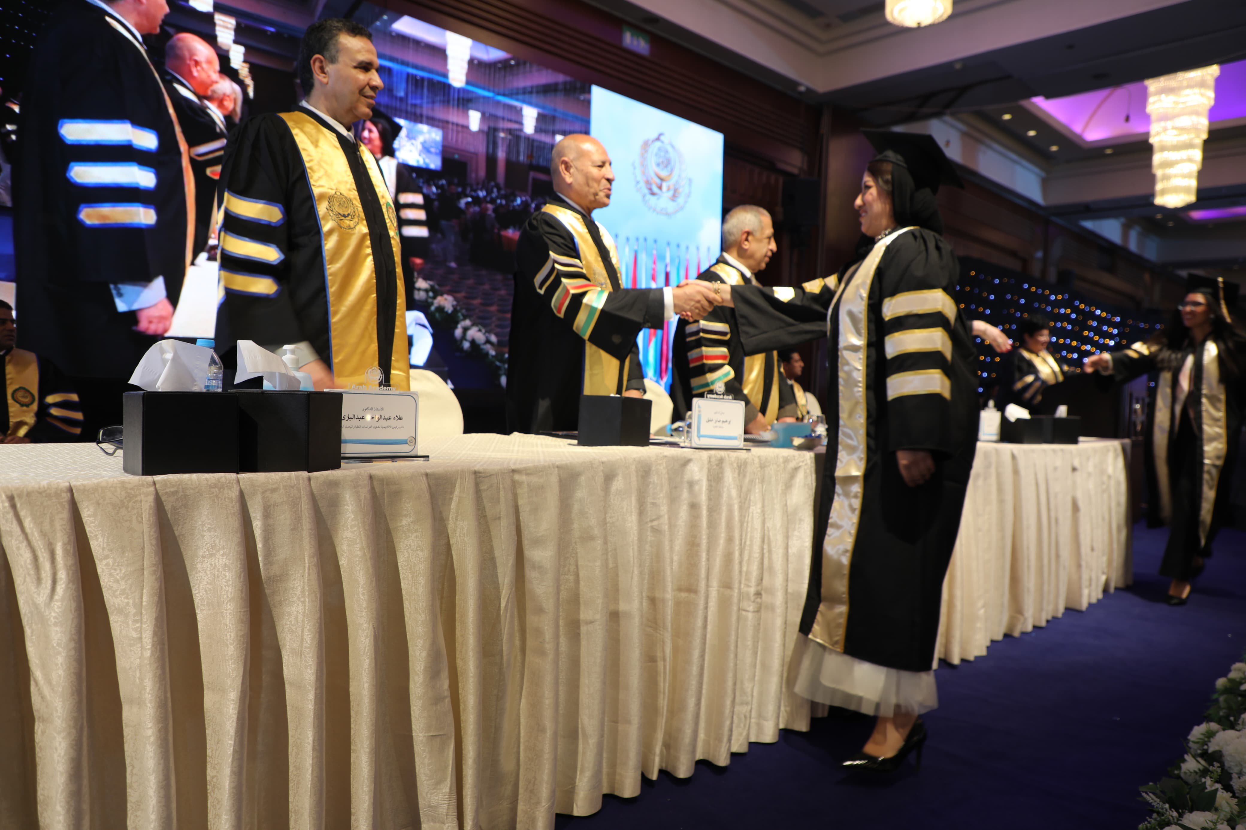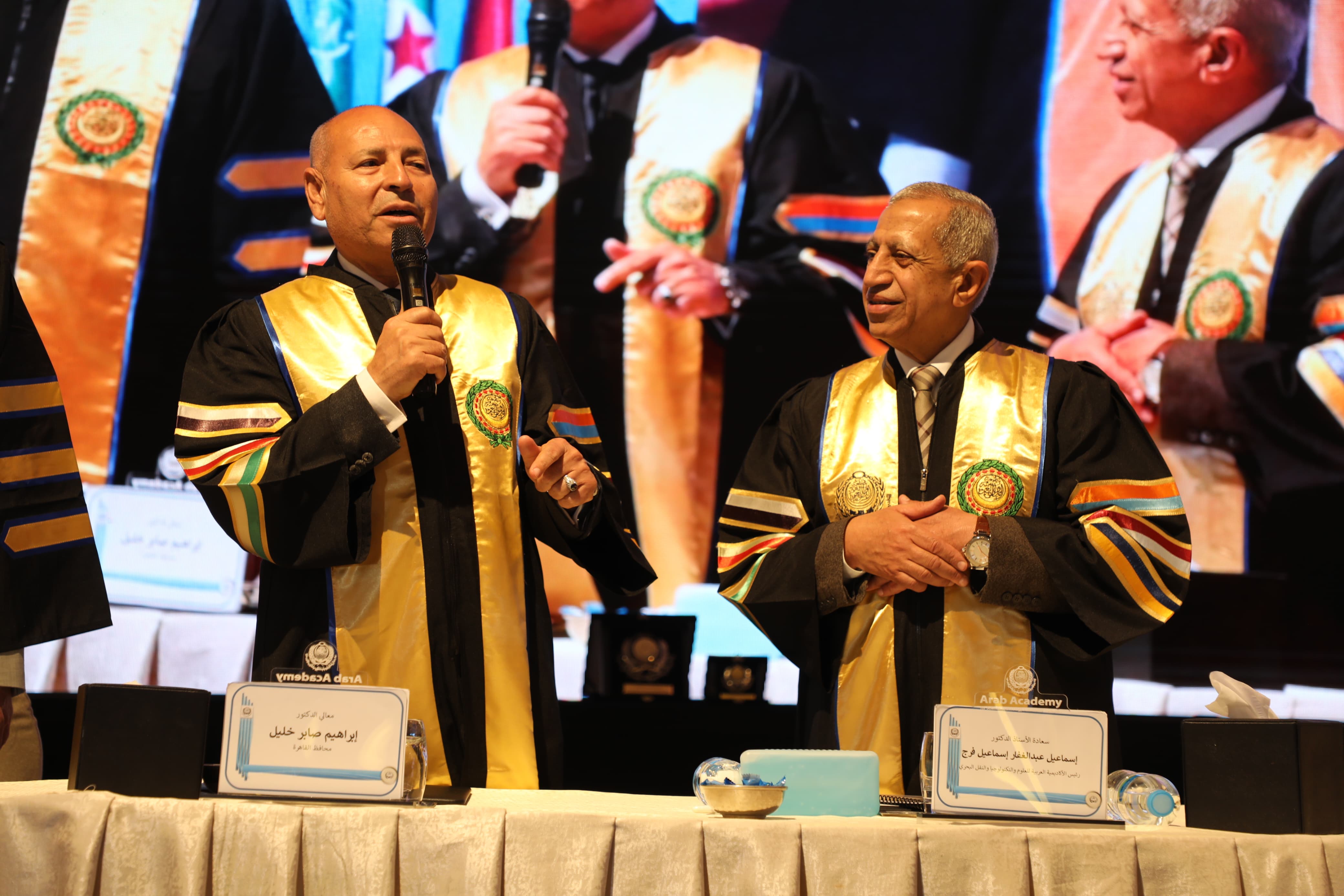شهد د. إبراهيم صابر محافظ القاهرة، ود. إسماعيل عبد الغفار رئيس الأكاديمية العربية للعلوم والتكنولوجيا والنقل البحرى، حفل تخرج ٢٤٩ طالبً من حملة الماجستير والدكتوراة بكلية الدراسات العليا في الإدارة بالاكاديمية من عدة دول بينها مصر واليمن والسعودية وليبيا .