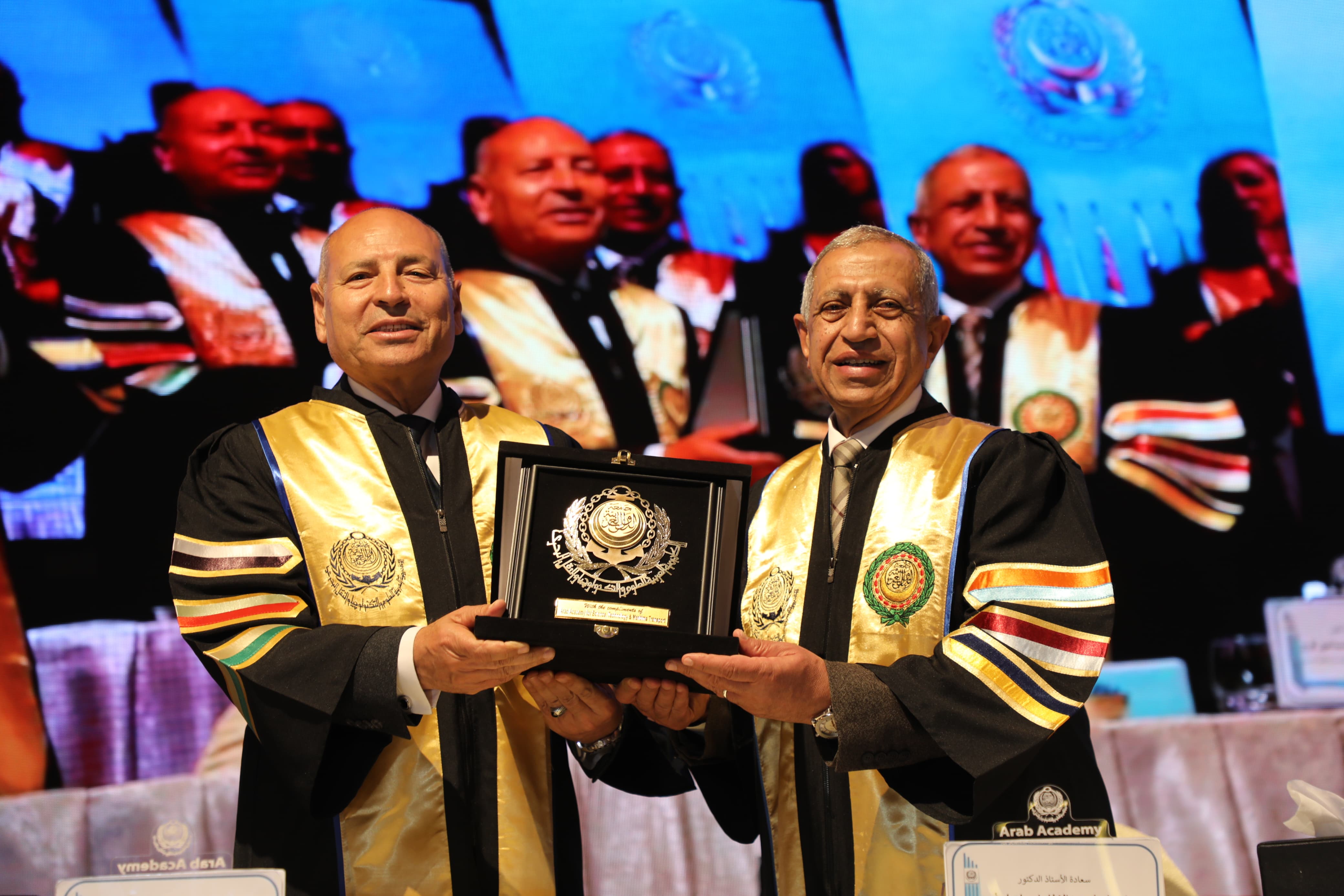وفى نهاية الحفل أهدى د. إسماعيل عبد الغفار رئيس الأكاديمية العربية للعلوم والتكنولوجيا والنقل البحرى، درع الأكاديمية للدكتور إبراهيم صابر محافظ القاهرة تقديرًا لجهوده .