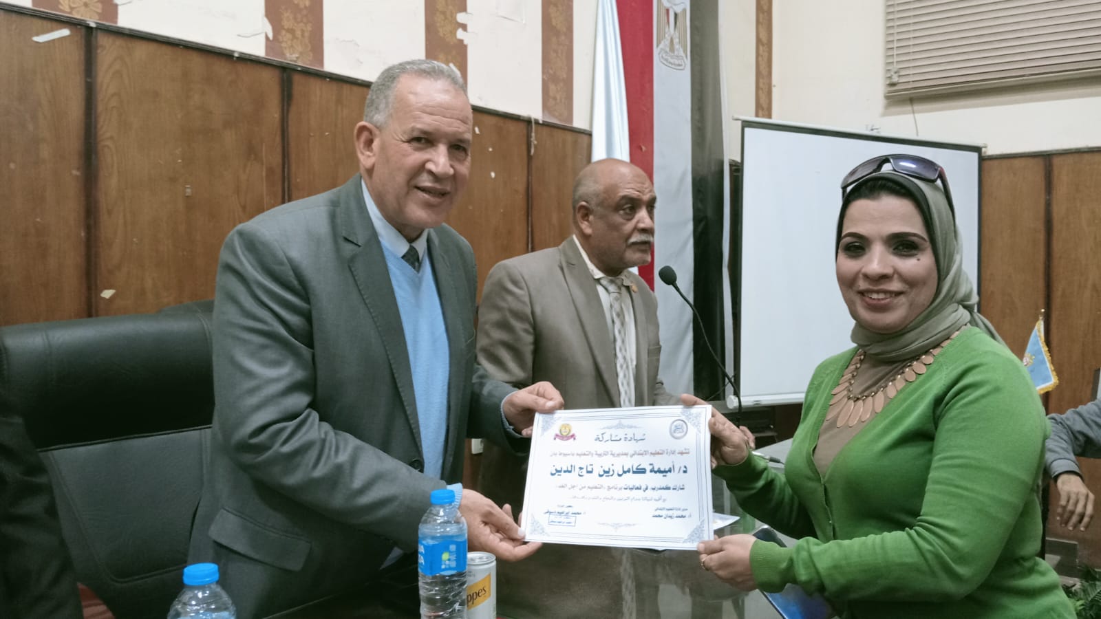 شهد محمد ابراهيم دسوقى وكيل وزارة التربية والتعليم بأسيوط حفل تكريم المدربين والقائمين على البرنامج التدريبى " التعليم من أجل الغد " والذى نفذته إدارة التعليم الابتدائى بالمديرية تحت إشراف وزارة التربية والتعليم وبرعاية السيد محمد عبد اللطيف وزير التربية والتعليم والتعليم الفنى ... جاء ذلك بحضور محمد زيدان مدير عام إدارة التعليم الابتدائى بالمديرية والدكتور أحمد صفوت قراعة موجه عام اللغة العربية بالمديرية والدكتورة منال محمد رمضان منسق البرنامج ومدير مرحلة التعليم الابتدائى بالمديرية وسيد هاشم رئيس قسم التعليم الابتدائى بالمديرية والعشرات من الموجهين المستهدفين على مستوى الإدارات التعليمية .