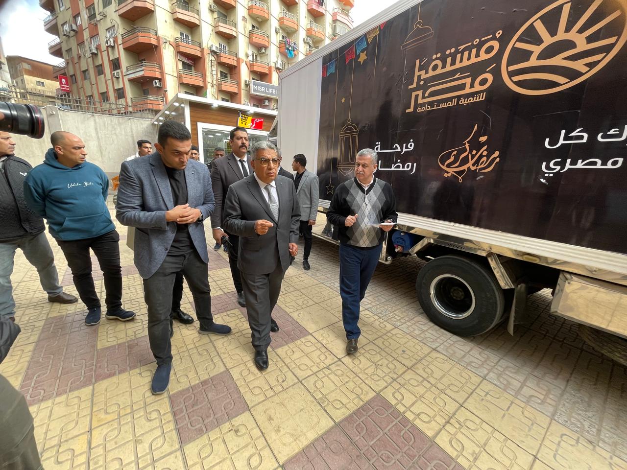 بمناسبة شهر رمضان المبارك محافظ الدقهلية يتفقد سيارات جهاز مستقبل مصر لبيع الدواجن المجمدة