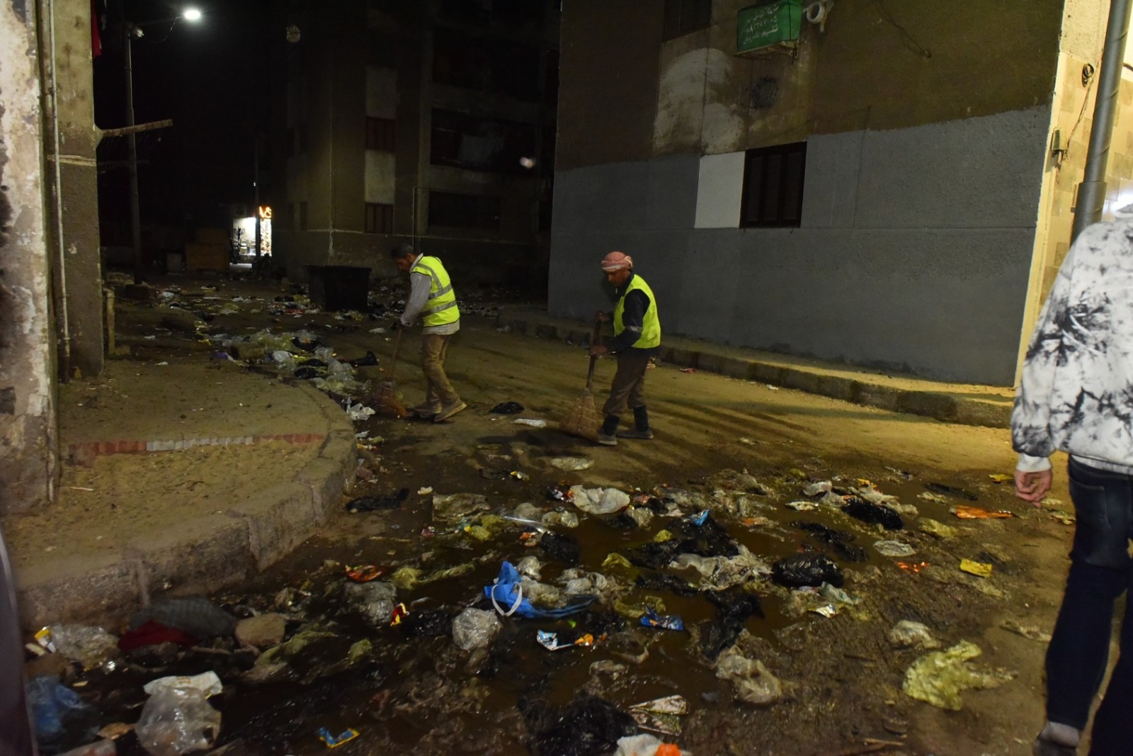 كما وجّه بسرعة التنسيق بين حي شرق وشركة مياه الشرب والصرف الصحي لإصلاح وصلات المياه ومعالجة مشكلة طفح الصرف المتكرر بين العمارات معالجة جذرية، حفاظًا على الصحة العامة. ووجّه كذلك برصف المساحات بين العمارات ببلاط الإنترلوك لتيسير الحركة ومنع تجمعات المياه، إلى جانب فتح الشوارع المغلقة بالإشغالات ورفع التعديات، ودعم المنطقة بأعمال الإنارة اللازمة.