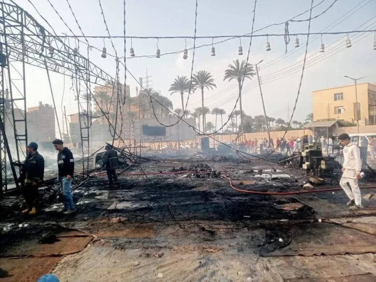 حريق هائل يلتهم معرض فوانيس رمضان بالكامل بالمنصورة