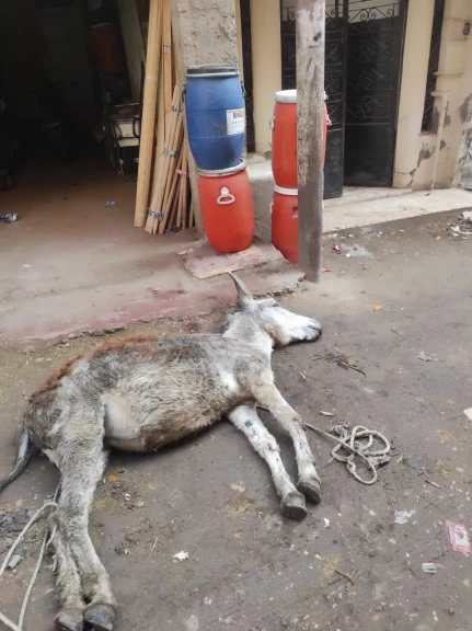 نفوق حمار بسبب هطول الأمطار الغزيرة وسوء أحوال الطقس بطنطا