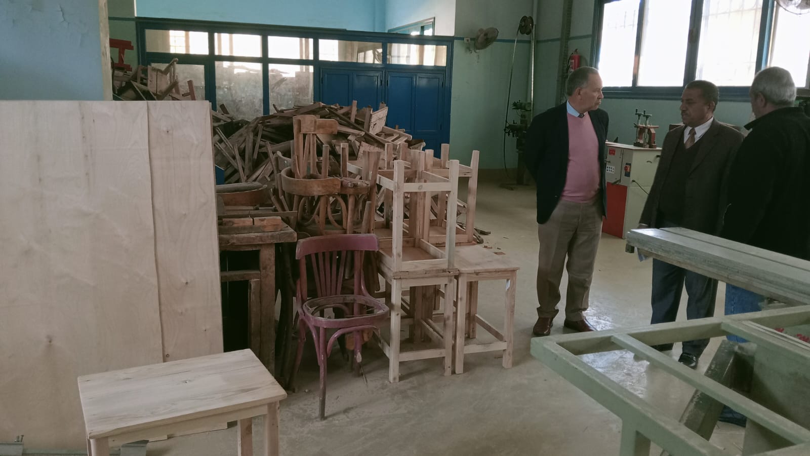 حيث أستهل وكيل الوزارة جولته بزيارة مدرسة اسيوط الثانوية الميكانيكية " تأسيس عسكرى " لمتابعة أعمال الصنيع بقسم الاخشاب والنجارة ضمن مبادرة تدوير الرواكد وتعظيم الاستفادة منها وتابع سير العمل ببعض أقسام و ورش المدرسة وتابع التدريب العملي للطلاب بورش النجارة وتشغيل الماكينات وكيفية تصنيعهم للمنتجات من خلال تدوير الرواكد لتصنيع " المقاعد وغرف النوم والباب والشباك والسلالم والترابيزات وخلايا النحل ومستلزمات المناحل " مشيرا الى ضرورة تسريع وتيرة العمل لاستغلال المخلفات الخشبية ورواكد المدارس الغير مستغلة و المتهالكة والتى تم تجميعها من مدارس المحافظة لتصنيع المنتجات الخشبية والأثاث المنزلى ومستلزمات الديكور الحديث تحت إشراف المعلمين المتخصصين بالمدرسة مشيدا بالمنتجات والمصنوعات وجودتها ورخص أسعارها بالمقارنة مع نظيراتها بالاسواق تمهيدا للمشاركة فى المعارض المختلفة .