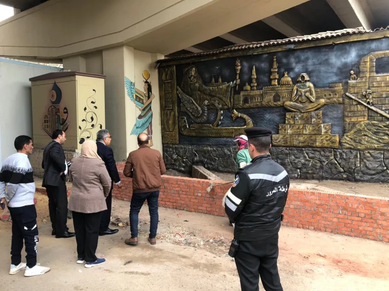 وخلال الجولة، تفقد " المحافظ " أعمال التطوير أسفل كوبري الجيش بشارع صلاح سالم، واطّلع على ما يتم تنفيذه من أعمال تجميل ورفع كفاءة لجدارية الجيش ، موجّهًا بسرعة الانتهاء من الأعمال ، بما يدعم الهوية البصرية ويحقق الشكل الحضاري اللائق بالمدينة.